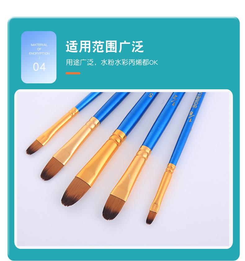 Herramientas de Pintura Artística Transfronteriza Pinceles de Gouache de Pelo de Nailon Degradado Venta al por Mayor Set de 5 Pinceles para Pintura al Óleo Pinceles para Acuarela