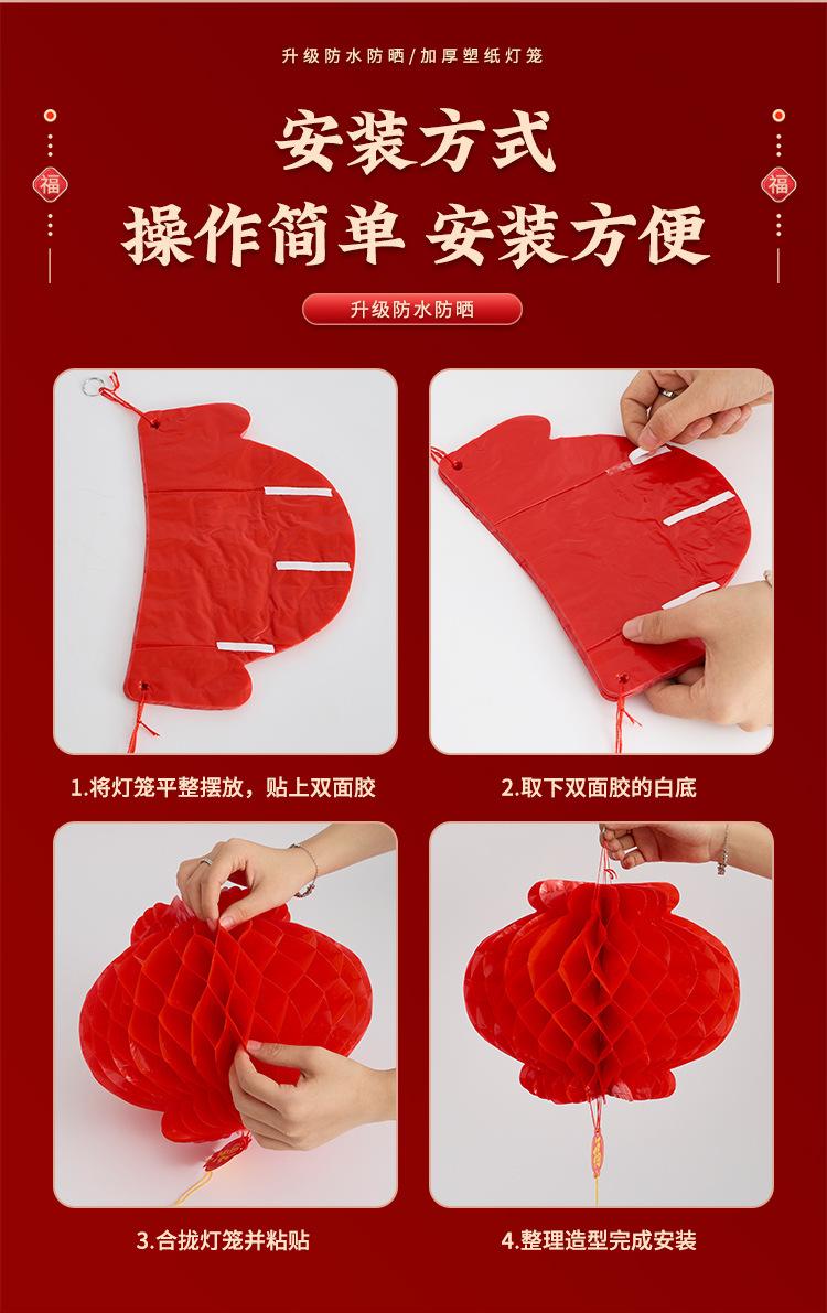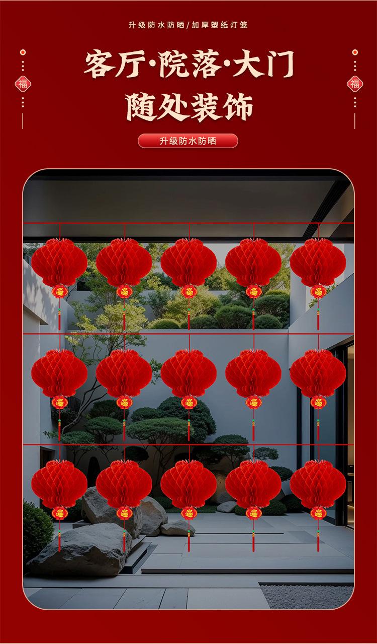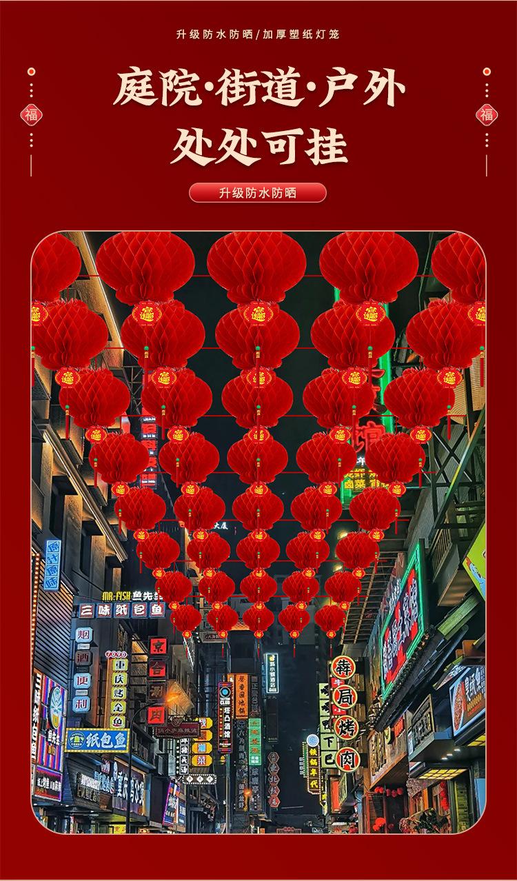 Linternas de Papel de Plástico Linternas de Papel Nido de Abeja Linternas de Papel Publicitarias Rojo Festivo Año Nuevo Festival de Primavera Linternas de Papel Decoraciones Colgantes Apertura Centro Comercial Tela