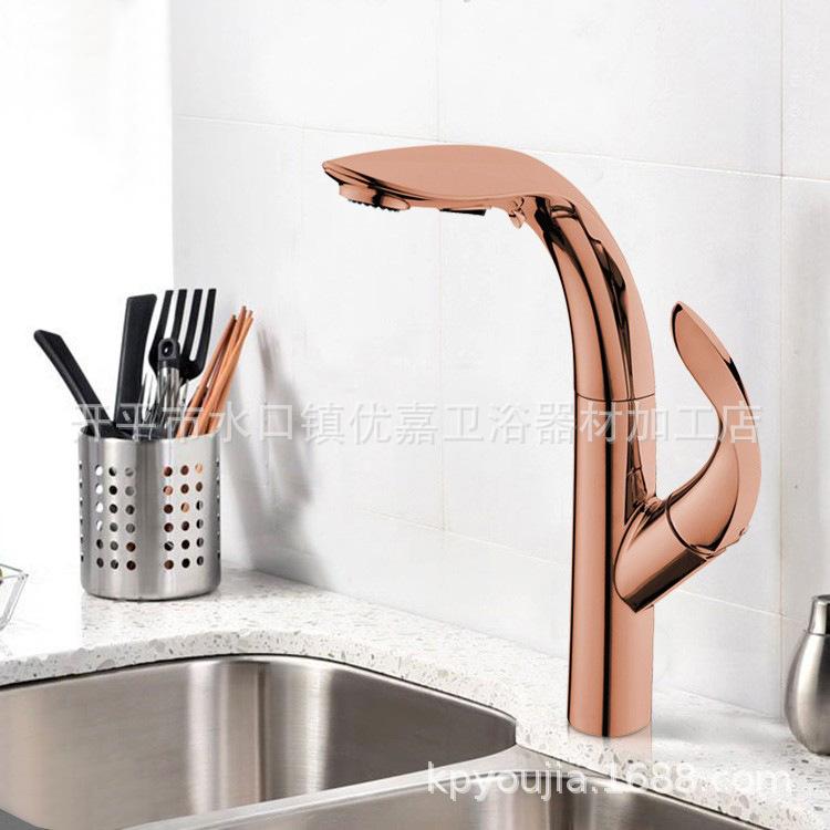 Kaiping Youjia Baño Extraíble Cocina Grifo Frío y Caliente Grifo de Fregadero Oro Rosa Grifo para Lavabo de Verduras 4506