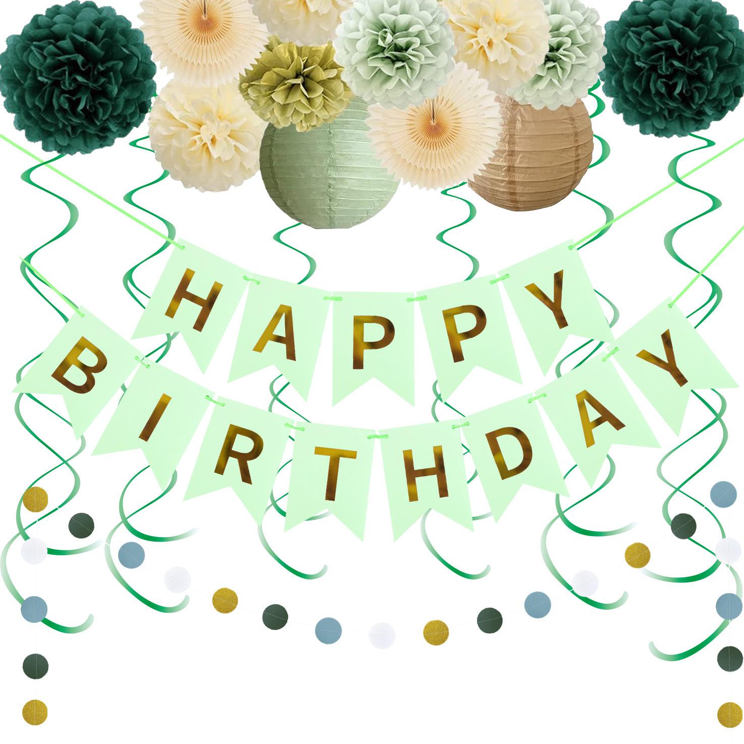Compra Bandera de cumpleaños temática de la serie verde, fiesta de cumpleaños, piezas redondas, pancarta, suministros para arreglos florales al por mayor en Joom.pro