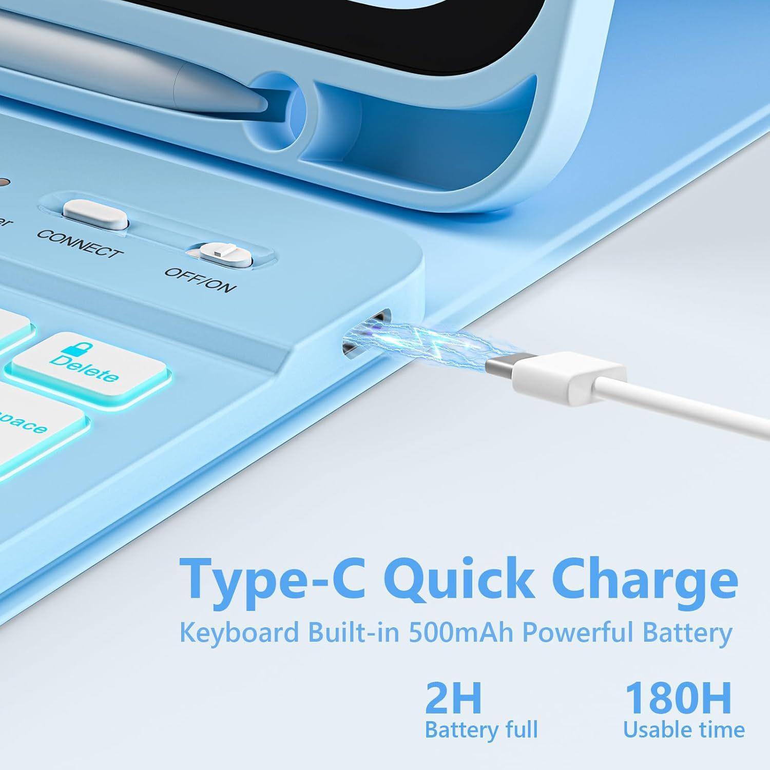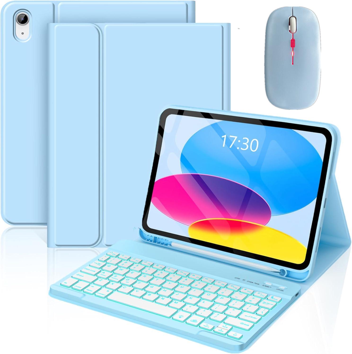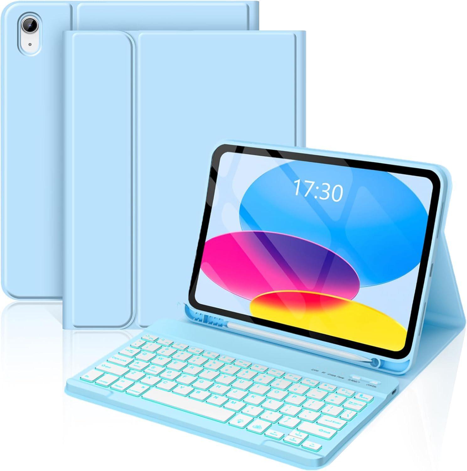 Adecuado para iPad A16 11 pulgadas 2025 Teclado Bluetooth Funda de cuero 10ª generación Tecla color cara Teclado blanco retroiluminado