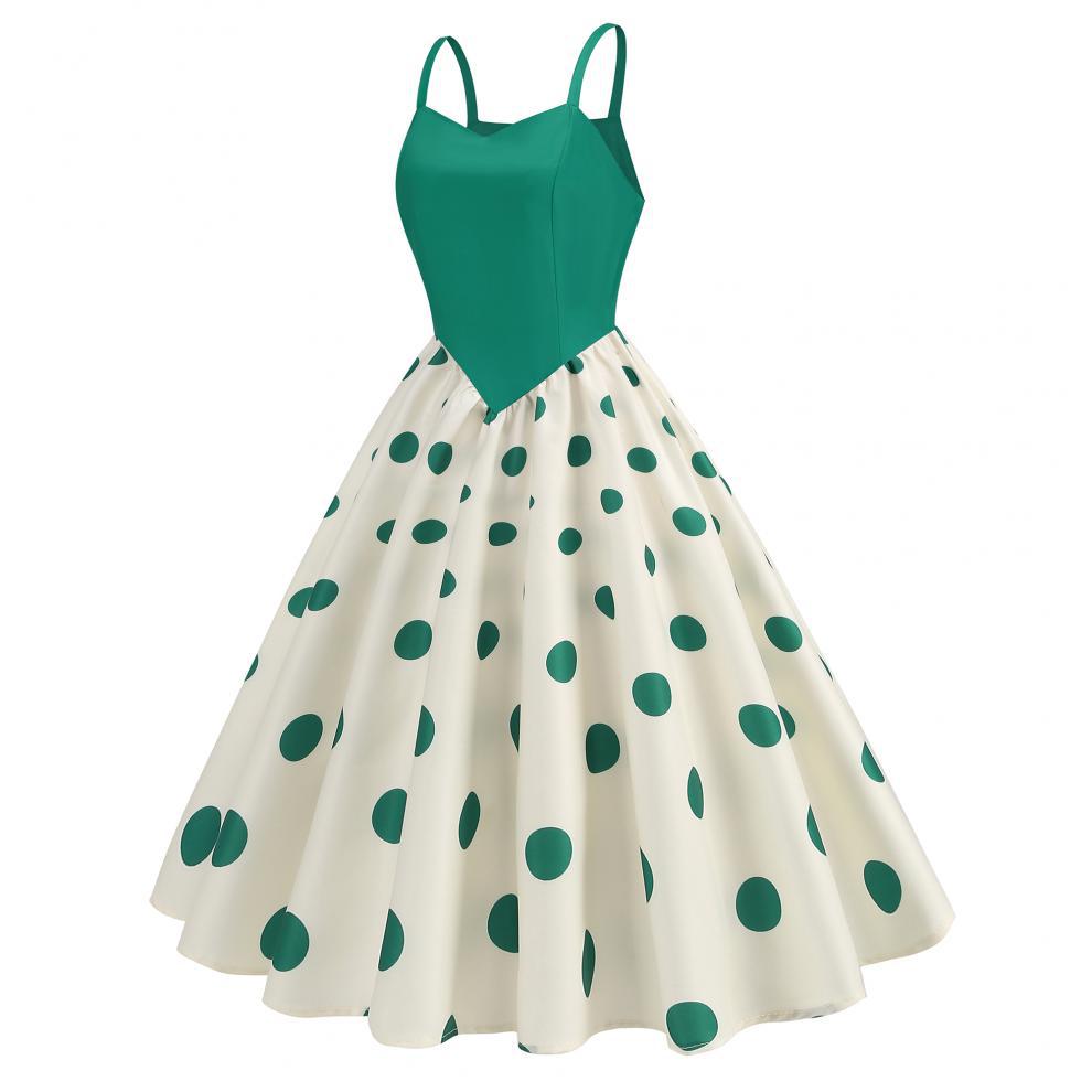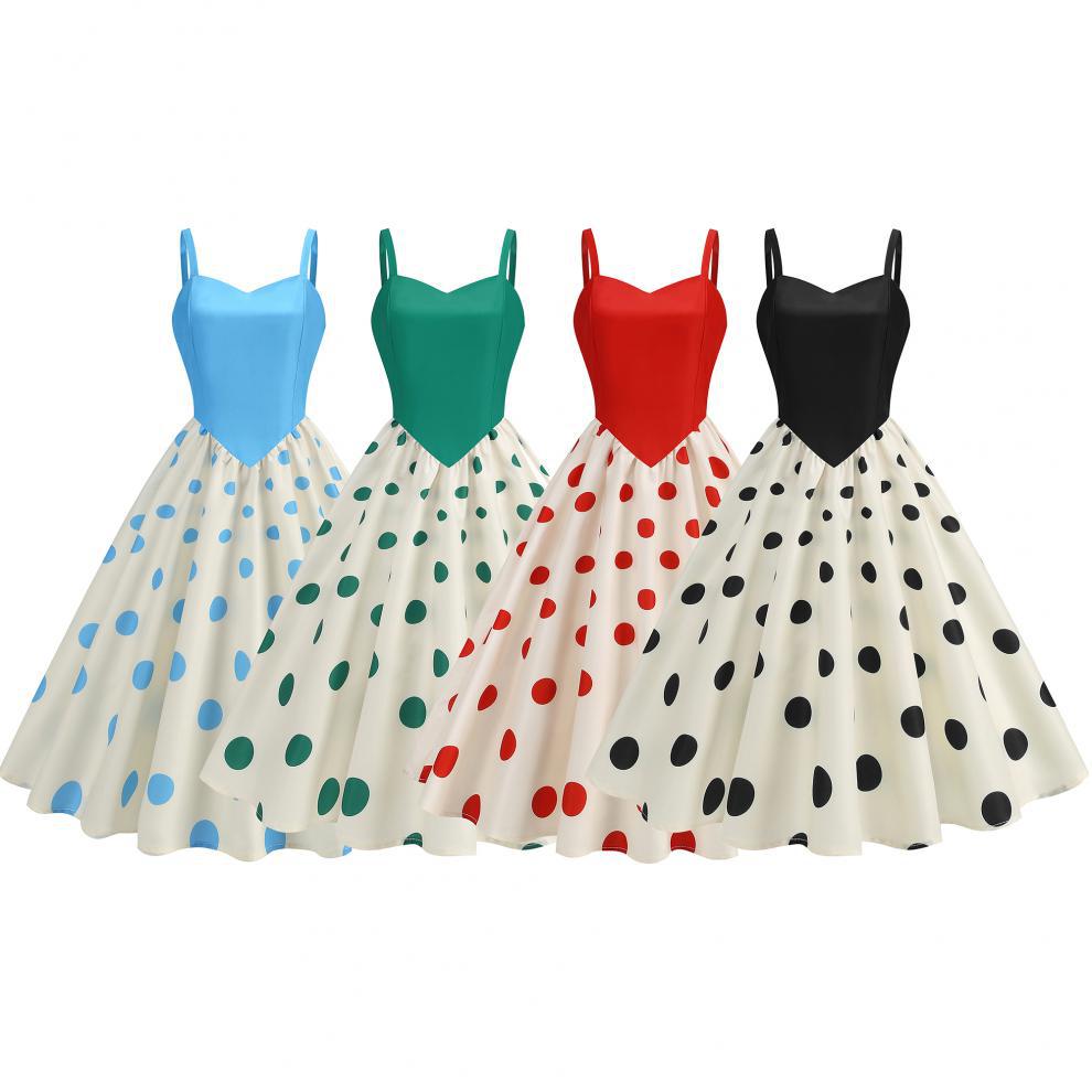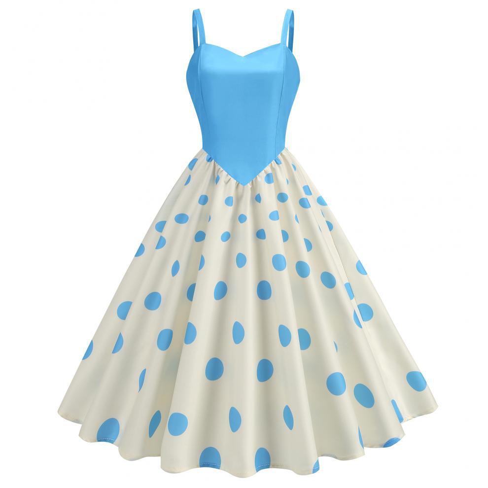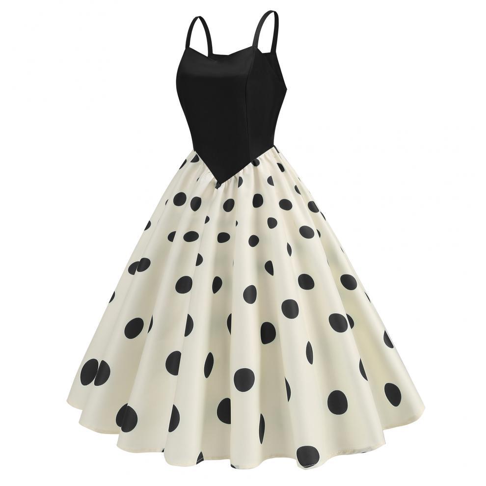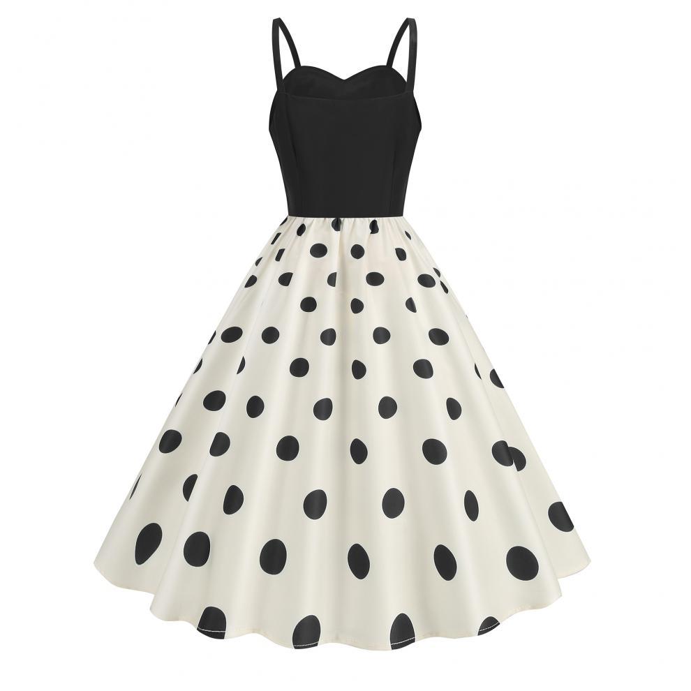 Vestido con estampado retro de lunares y ondas sexy, disponible en stock en Amazon 2024, superventas transfronterizas.