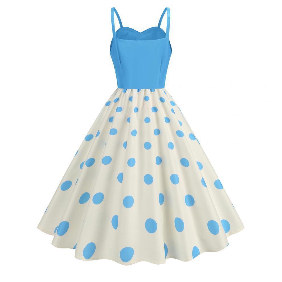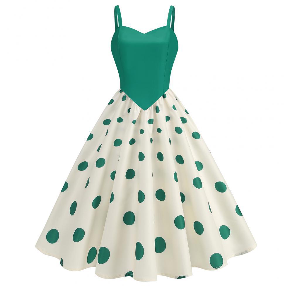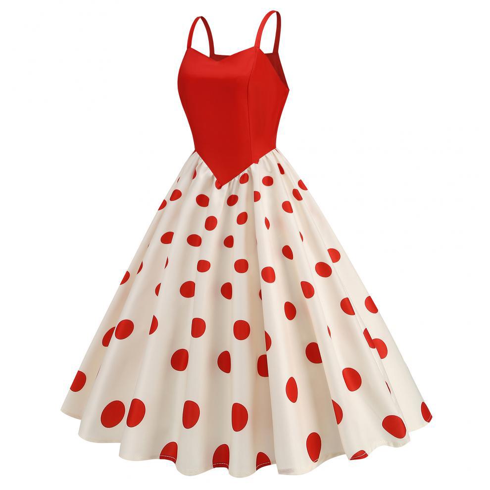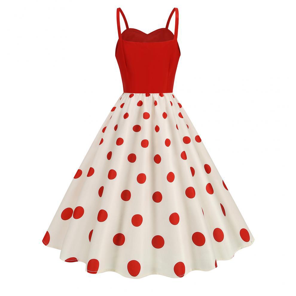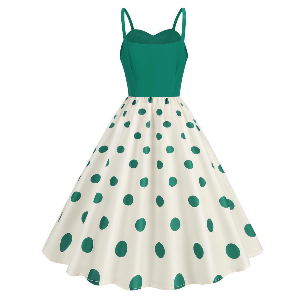 Vestido con estampado retro de lunares y ondas sexy, disponible en stock en Amazon 2024, superventas transfronterizas.