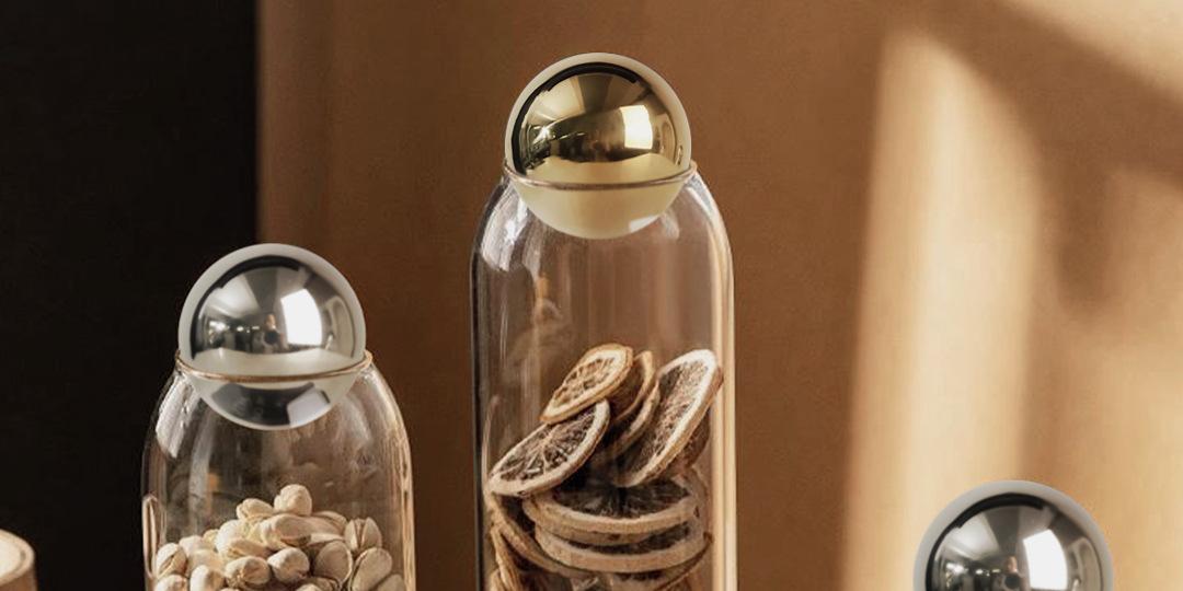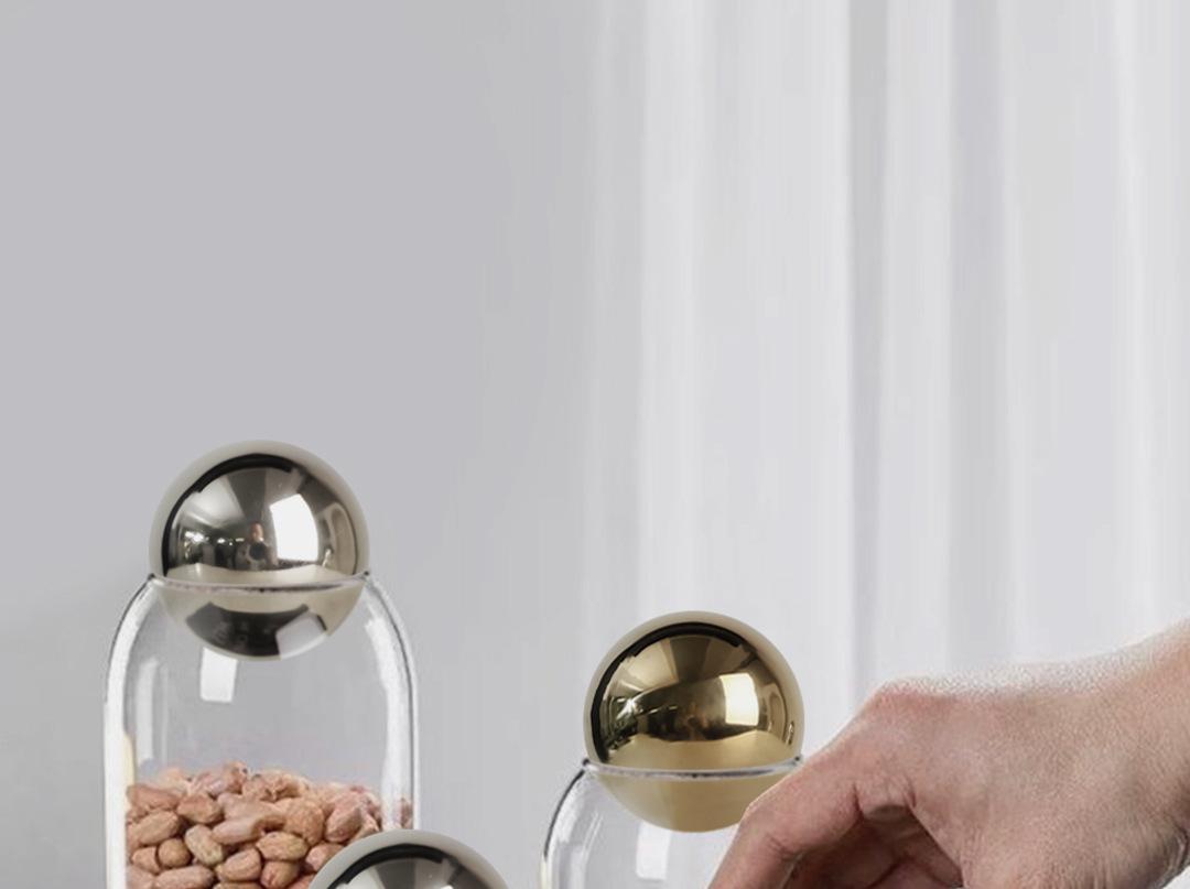 Multipurpose glass storage jar (low gold ball), Multipurpose glass storage jar (low silver ball), Multipurpose...