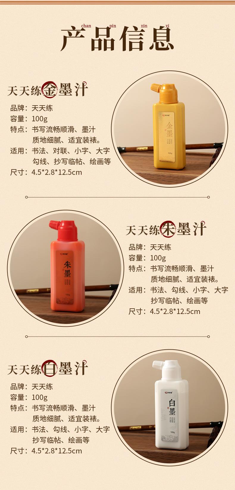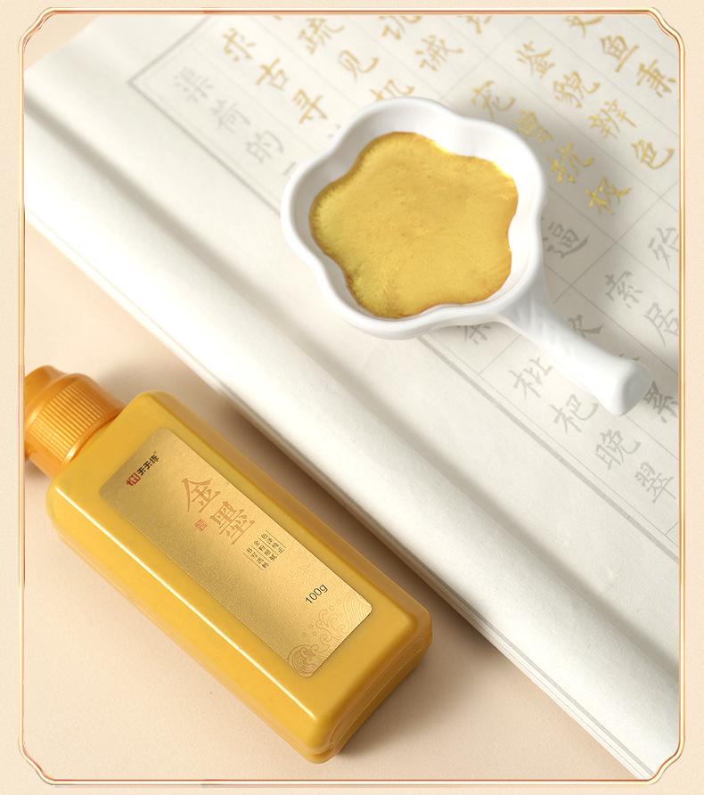 Todos los días para practicar la caligrafía con tinta dorada, práctica de tinta dorada especial 100 g, copia la escritura de las escrituras, tinta de copla, pintura china, tinta blanca Zhu Mo