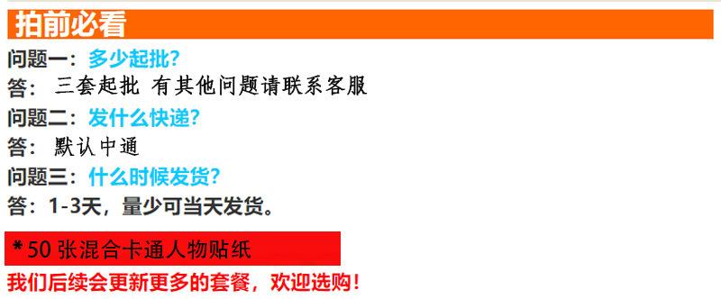 Horario de entrega: Entrega unificada a las 16:00 todos los días. Los pedidos realizados después de las 16:00 se enviarán al día siguiente. Por favor, contacte con el personal de atención al cliente para conocer el horario de entrega de las pegatinas personalizadas.