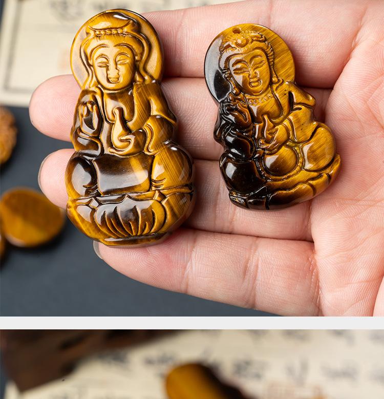 Colgante de Piedra Ojo de Tigre Natural Guanyin para Hombre y Mujer Seguro Piedra Clara Tigre Jade Guanyin Buda Joyería Colgante en stock Venta al por mayor