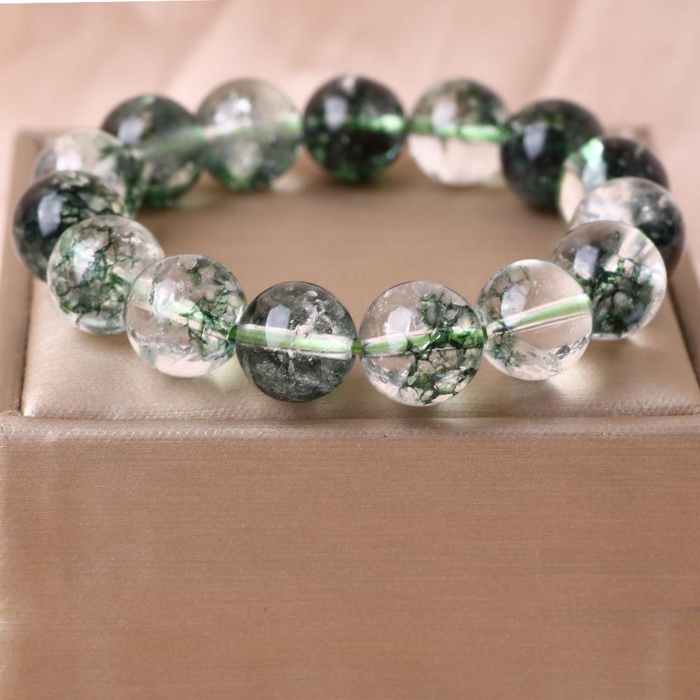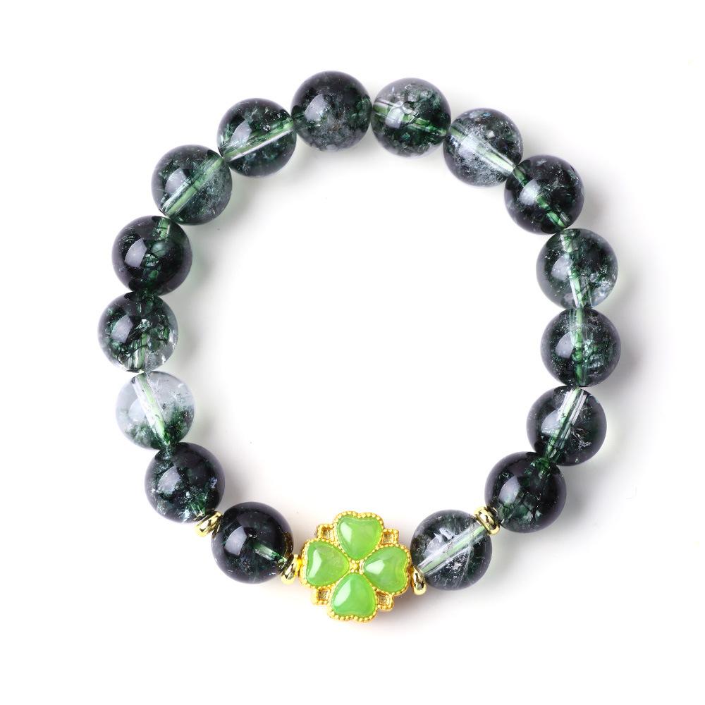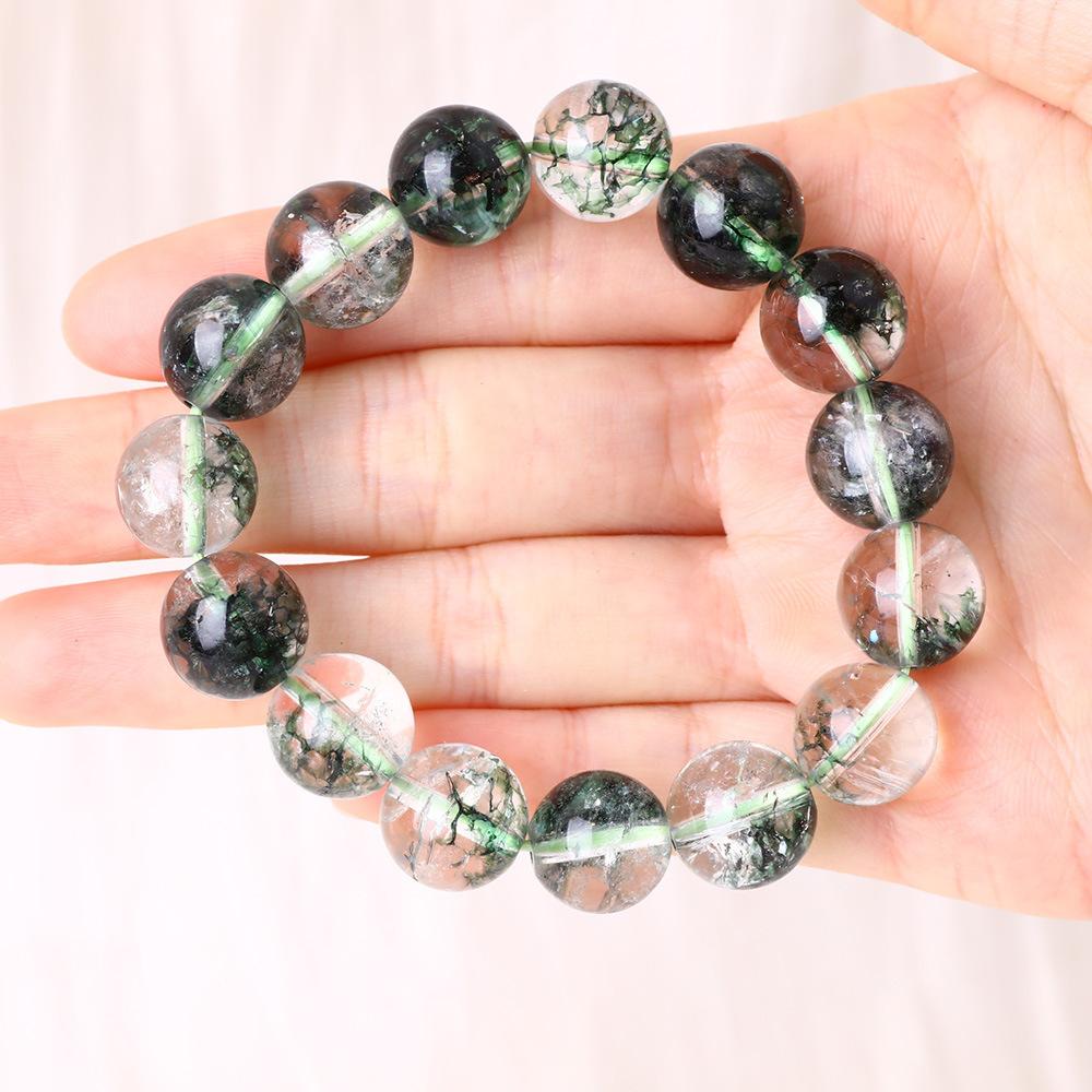 Pulsera de cuentas redondas de fantasma verde, cada una está cuidadosamente y exclusivamente diseñada por el diseñador.