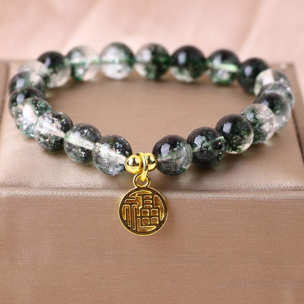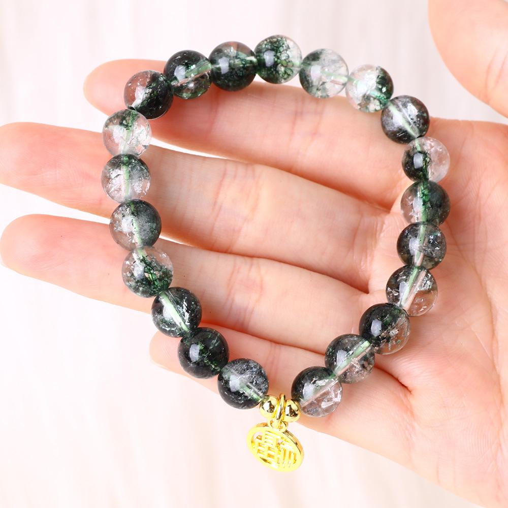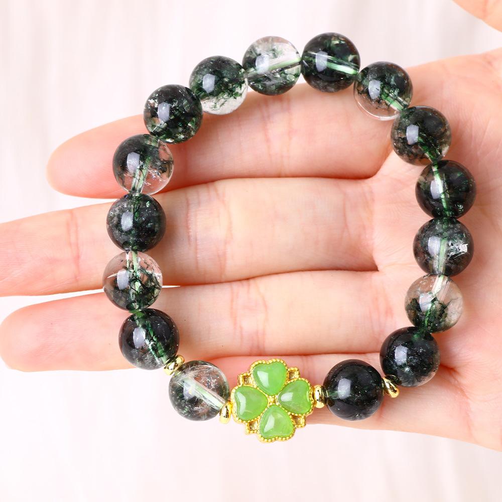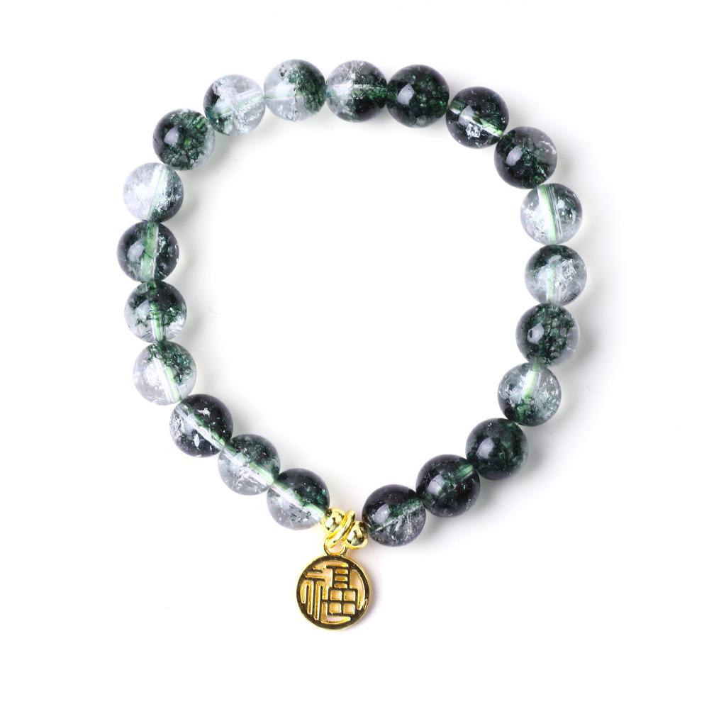 Pulsera de cuentas redondas de fantasma verde, cada una está cuidadosamente y exclusivamente diseñada por el diseñador.