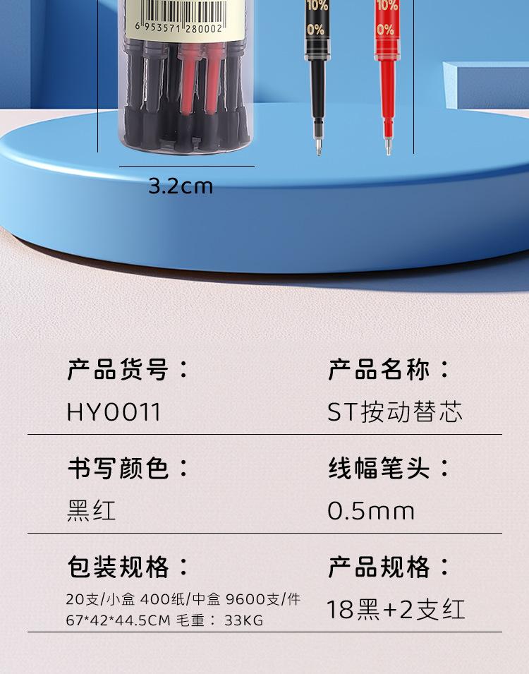ST de venta caliente transfronteriza presionar para reemplazar el núcleo tinta de secado rápido ancho de línea 0.5 mm niños estudiantes con bolígrafo recargas de firma de oficina