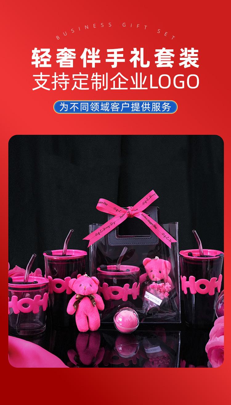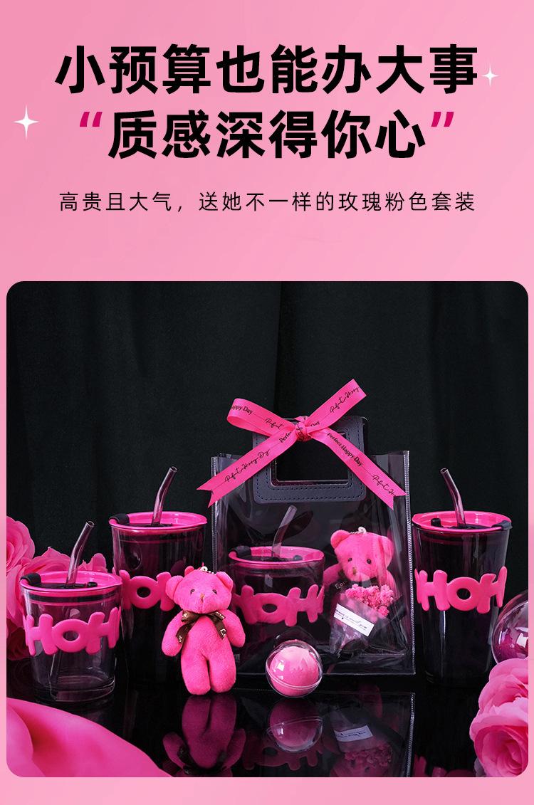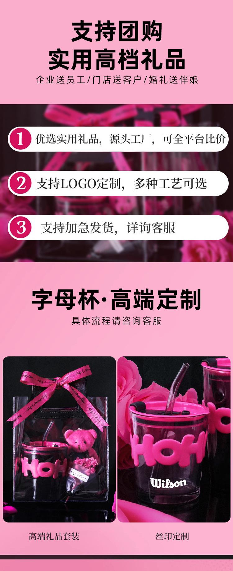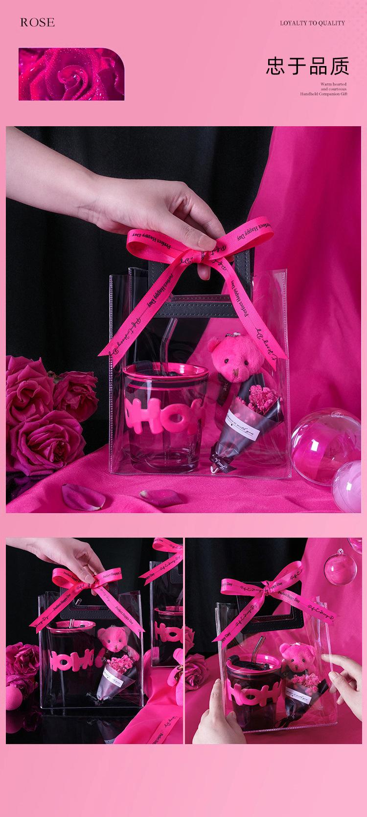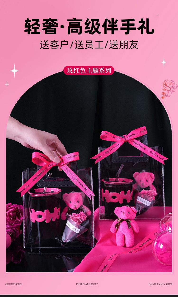 Bamboo cup + transparent straw + gift bag + sunflower flower, Bamboo cup + transparent straw + gift bag + bear towel
