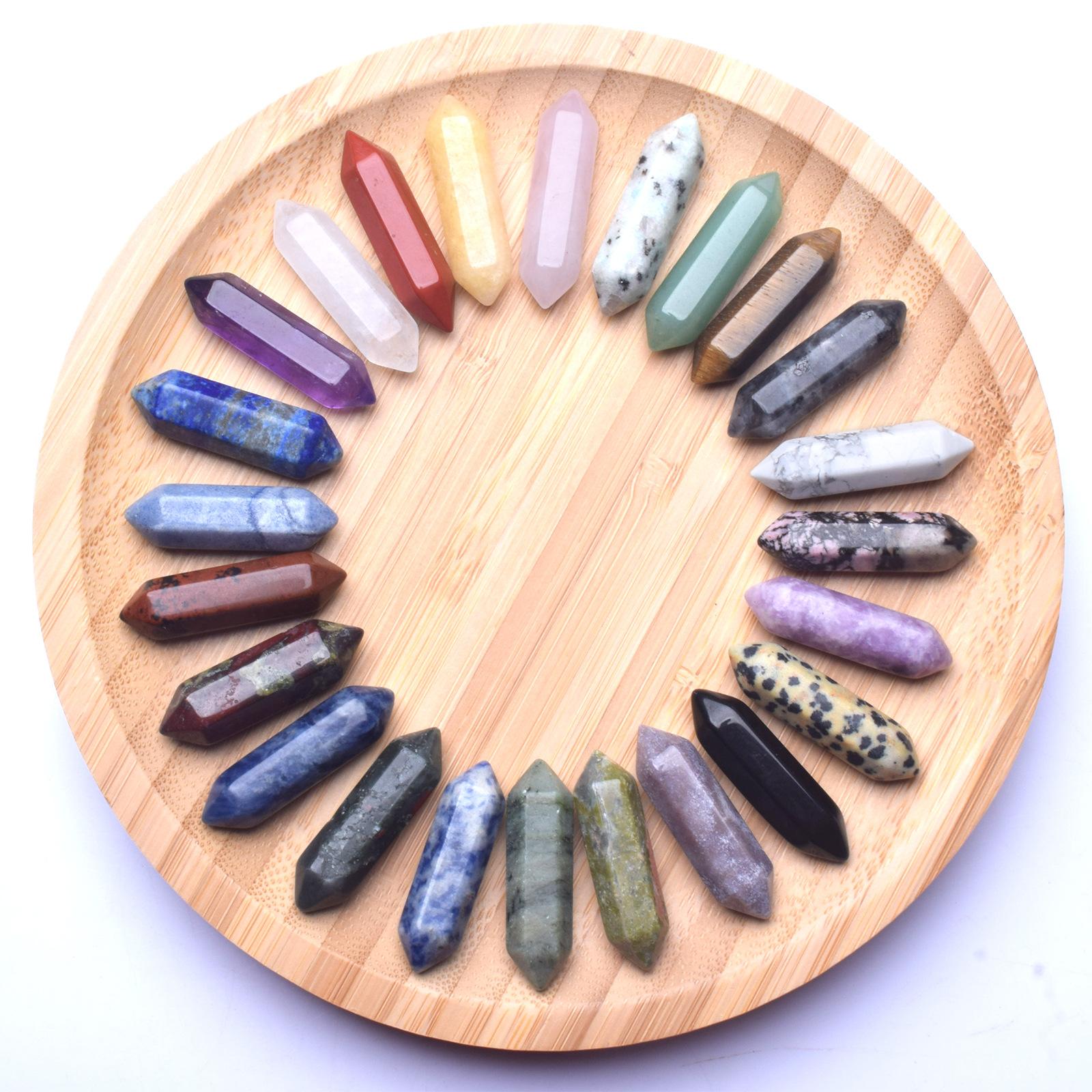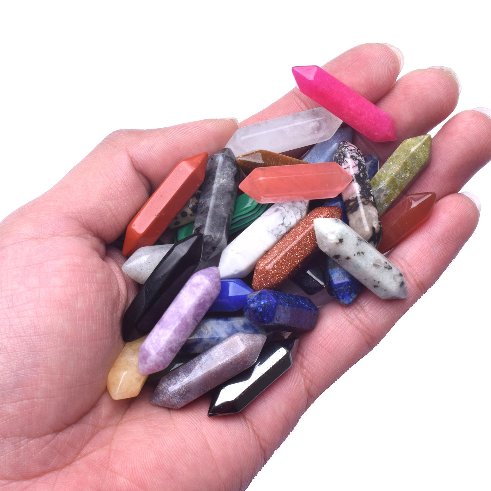 Piedra Natural Cristal Columna Hexagonal Puntas Dobles Prisma Hexagonal Piedra de Yoga Joyería Piedra Original