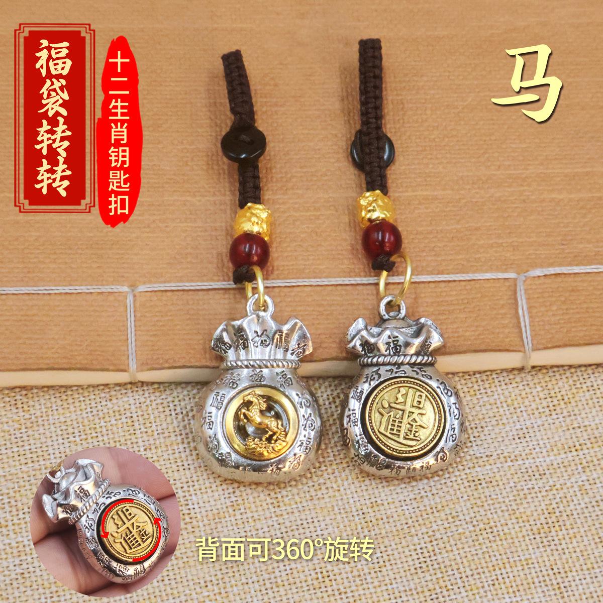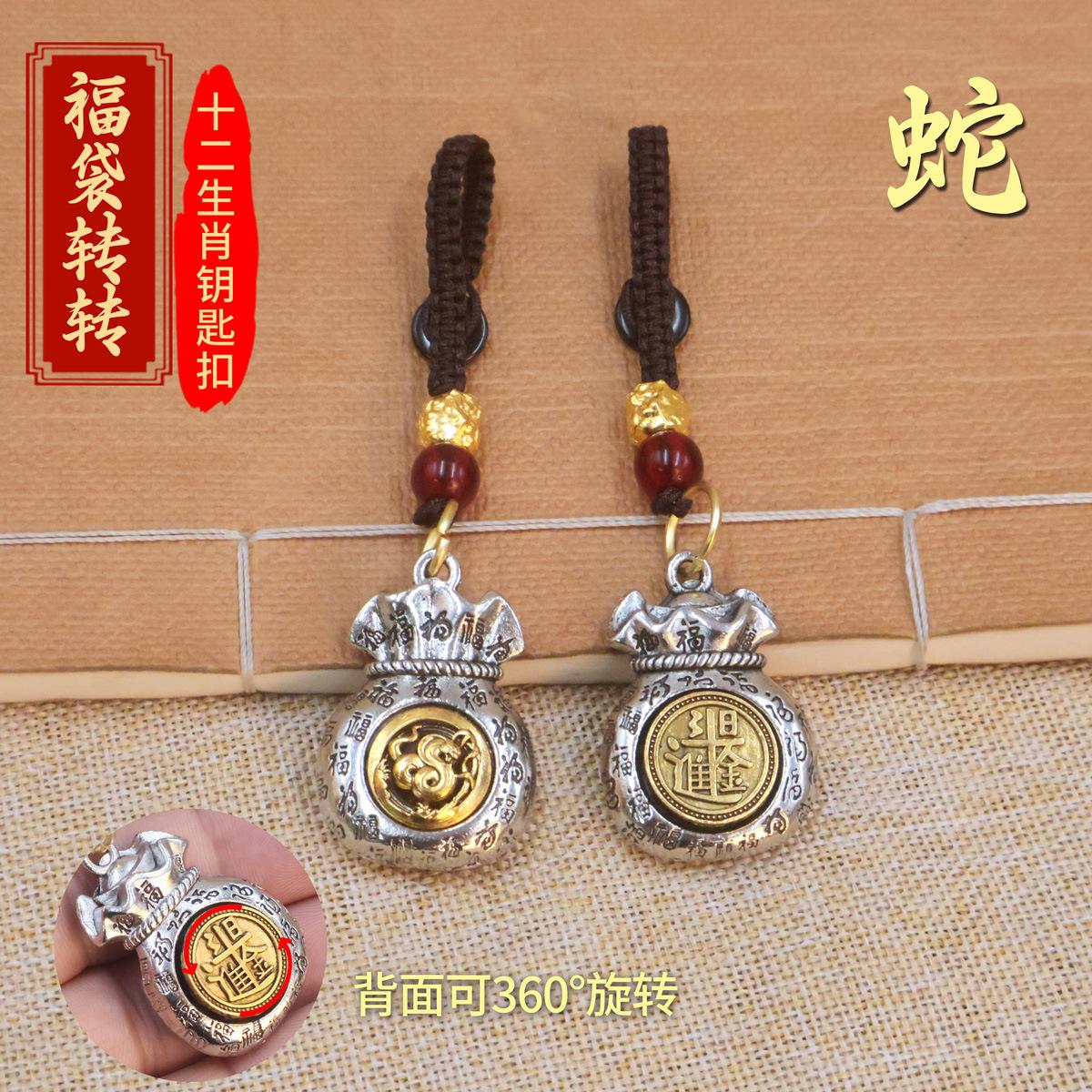 Bolsa de bendición, colgante de cubo Rijin del zodiaco, regalo artesanal, llavero del zodiaco, metal financiero, mano