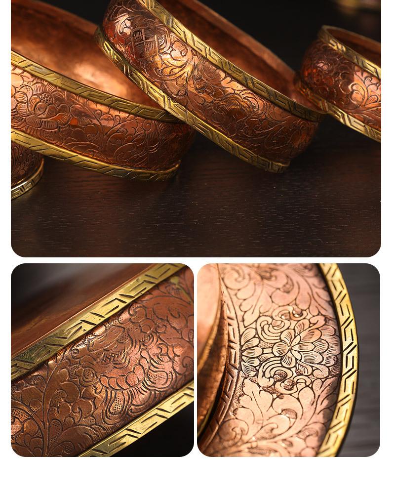 Suministros de Xizang Nepal Cobre Importado Chapado en Oro Hecho a Mano Tallado Manzaman Té Luo Suministros para el Hogar Grueso
