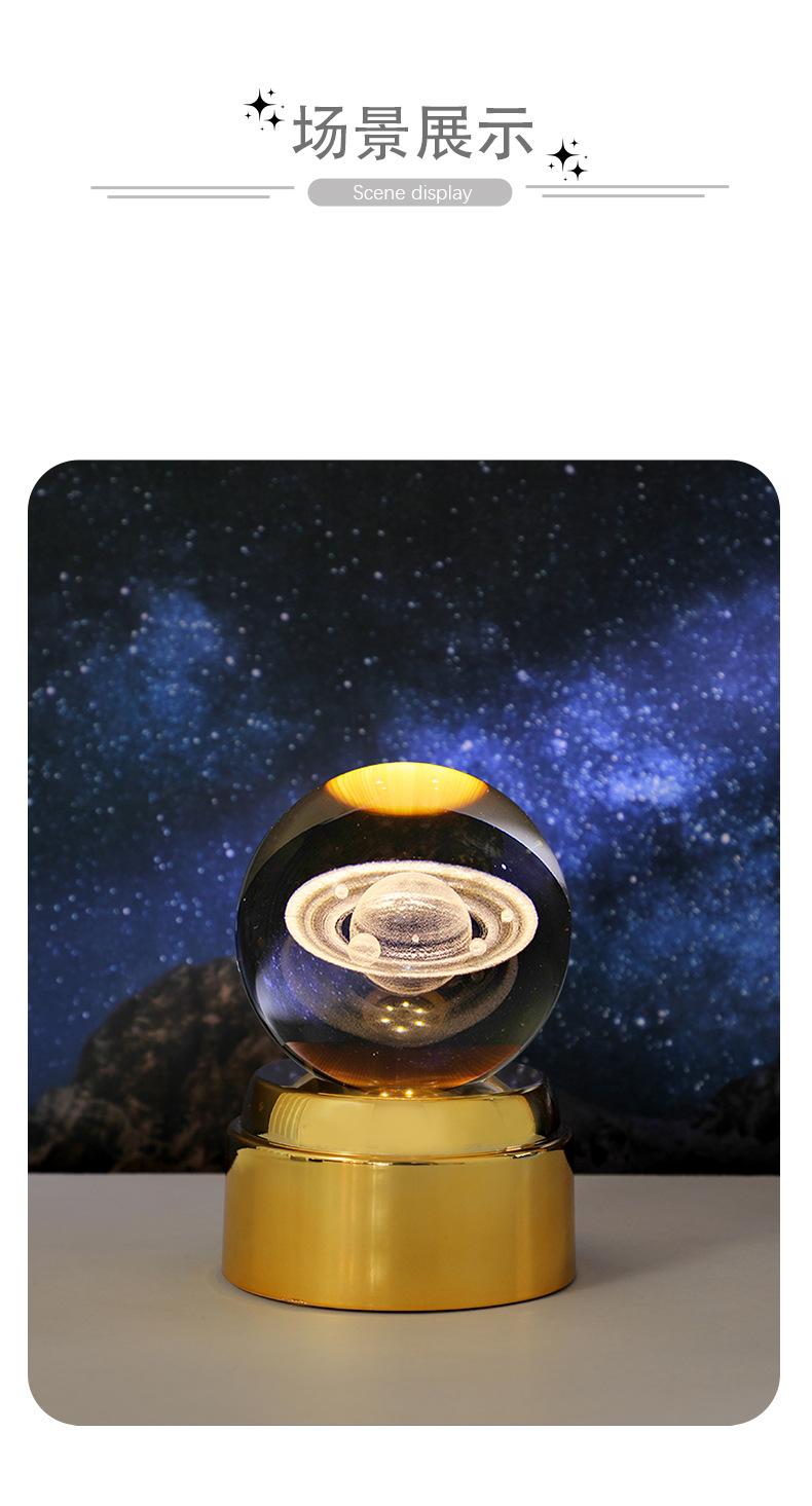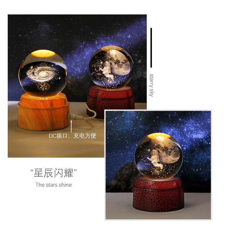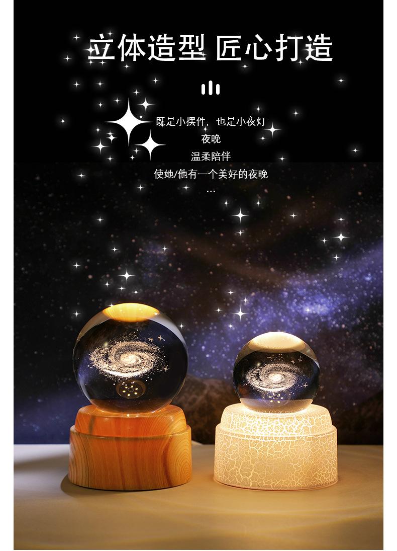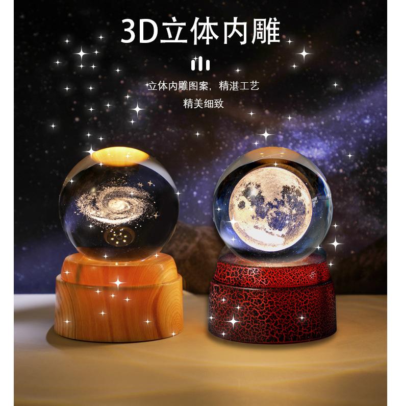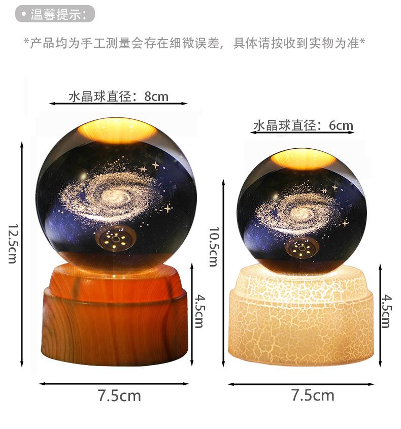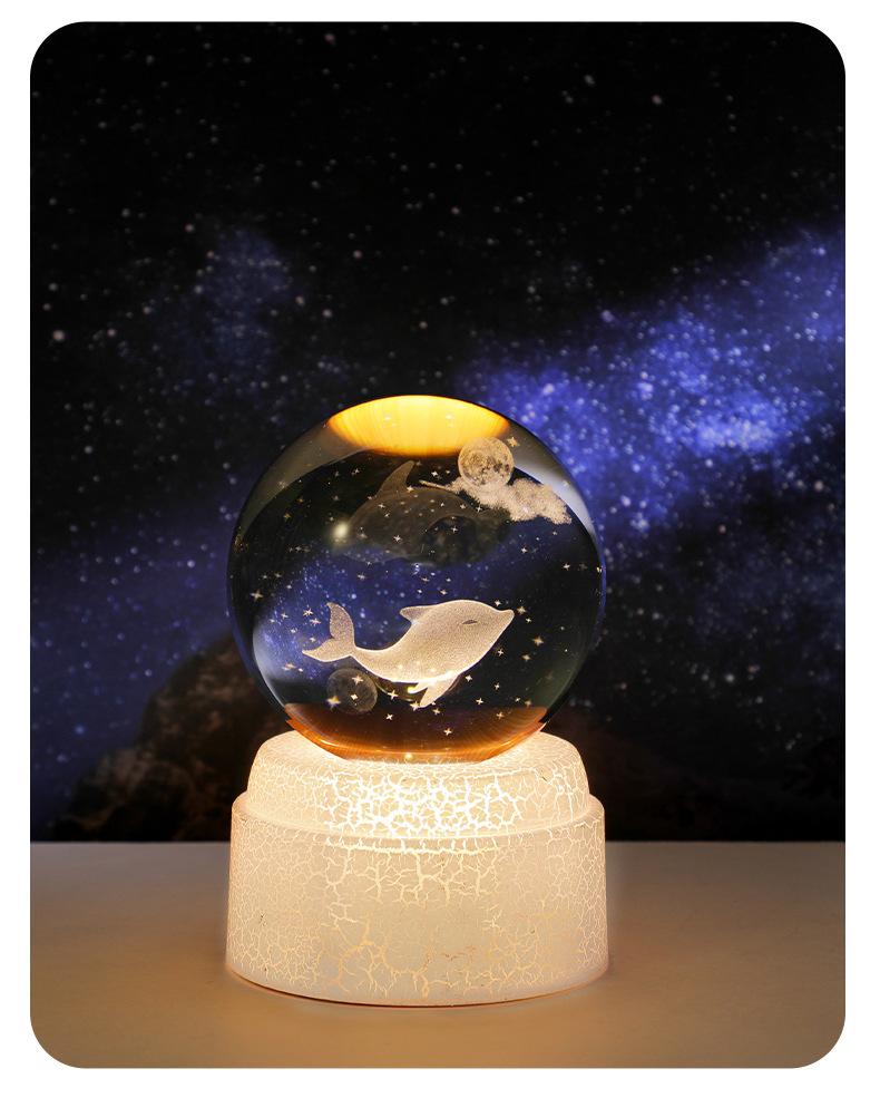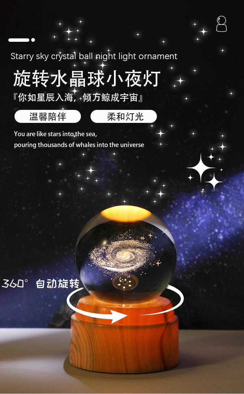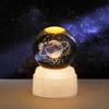 Bola de cristal 3D creativa con base giratoria luminosa tallada en el interior, luz nocturna, bola de cristal de galaxia, adornos de escritorio, regalos navideños