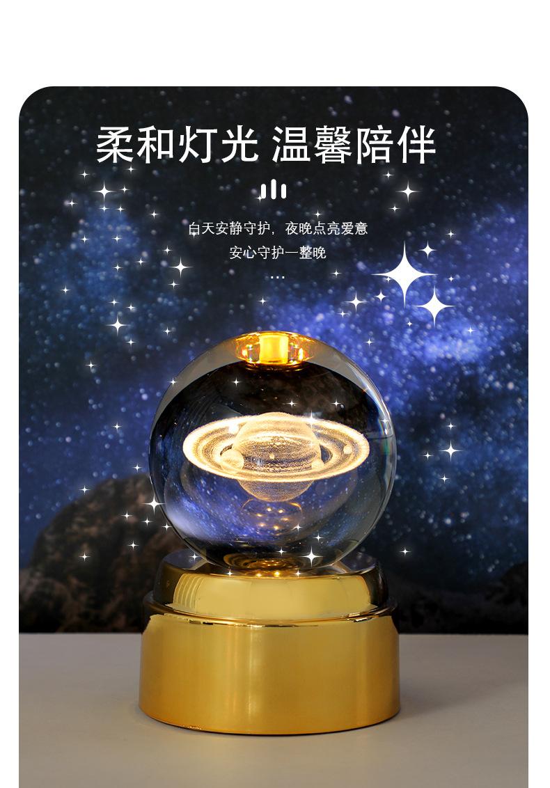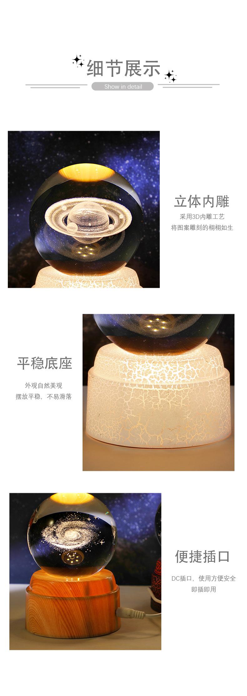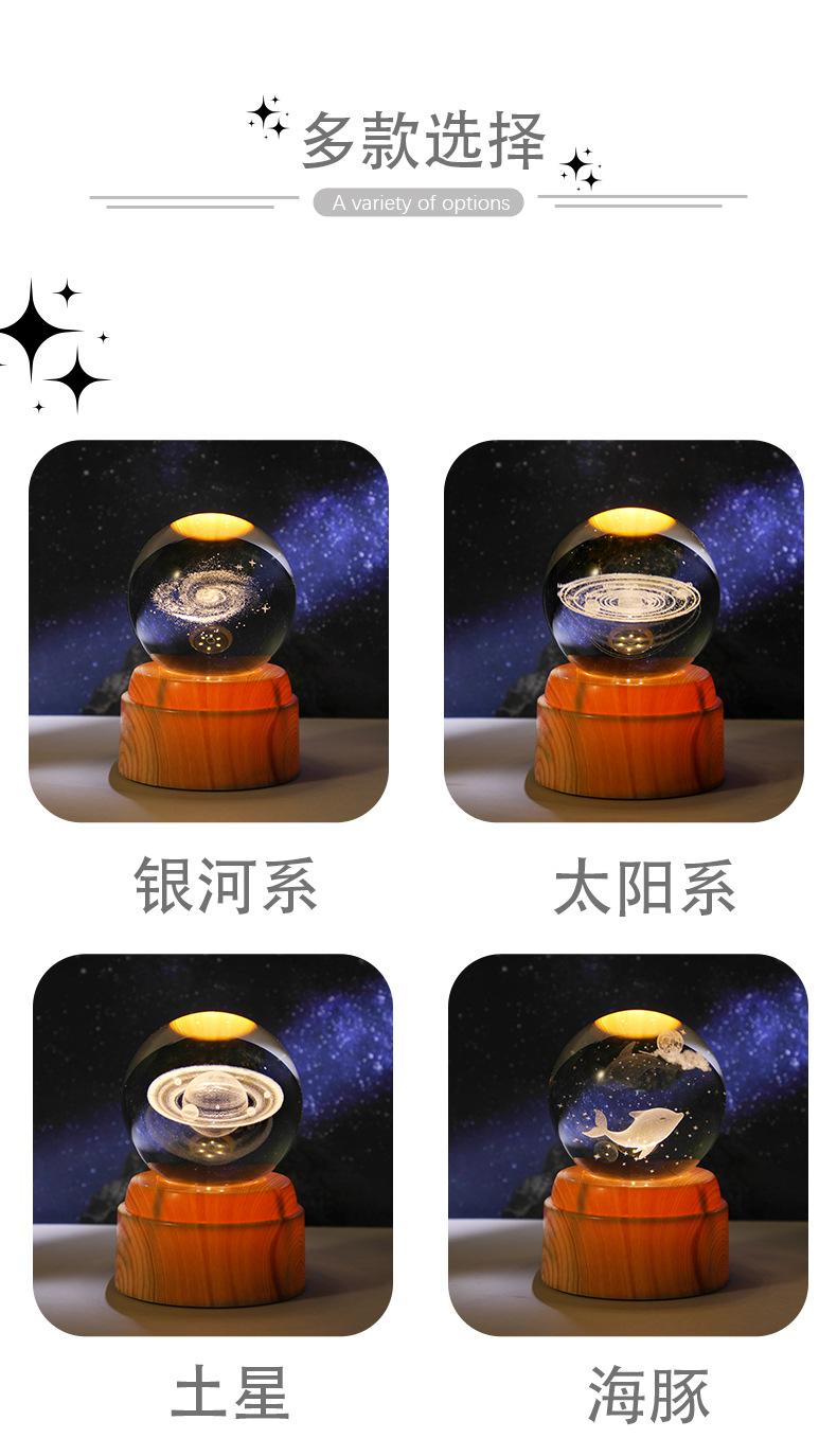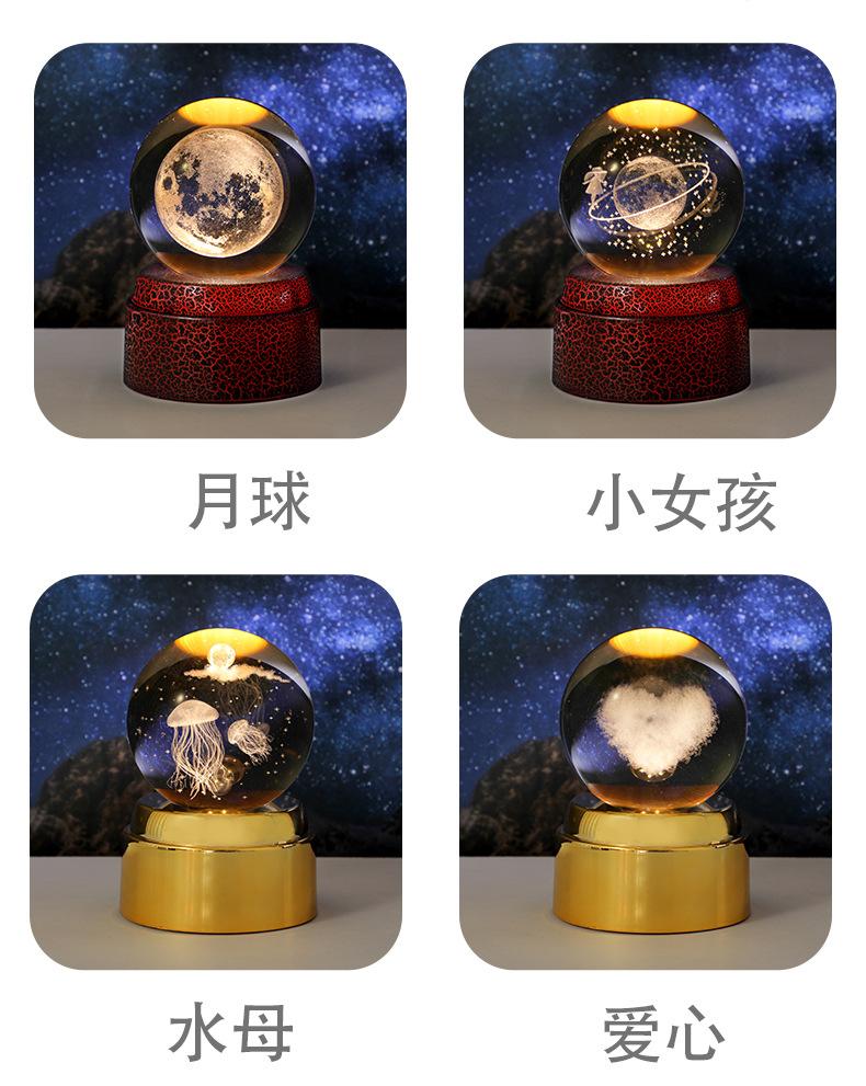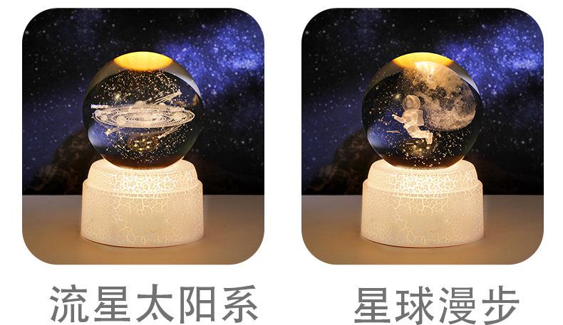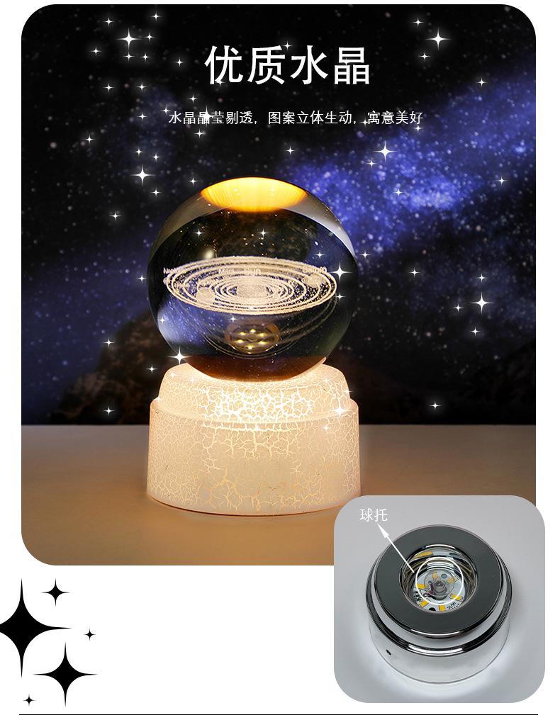 Bola de cristal 3D creativa con base giratoria luminosa tallada en el interior, luz nocturna, bola de cristal de galaxia, adornos de escritorio, regalos navideños