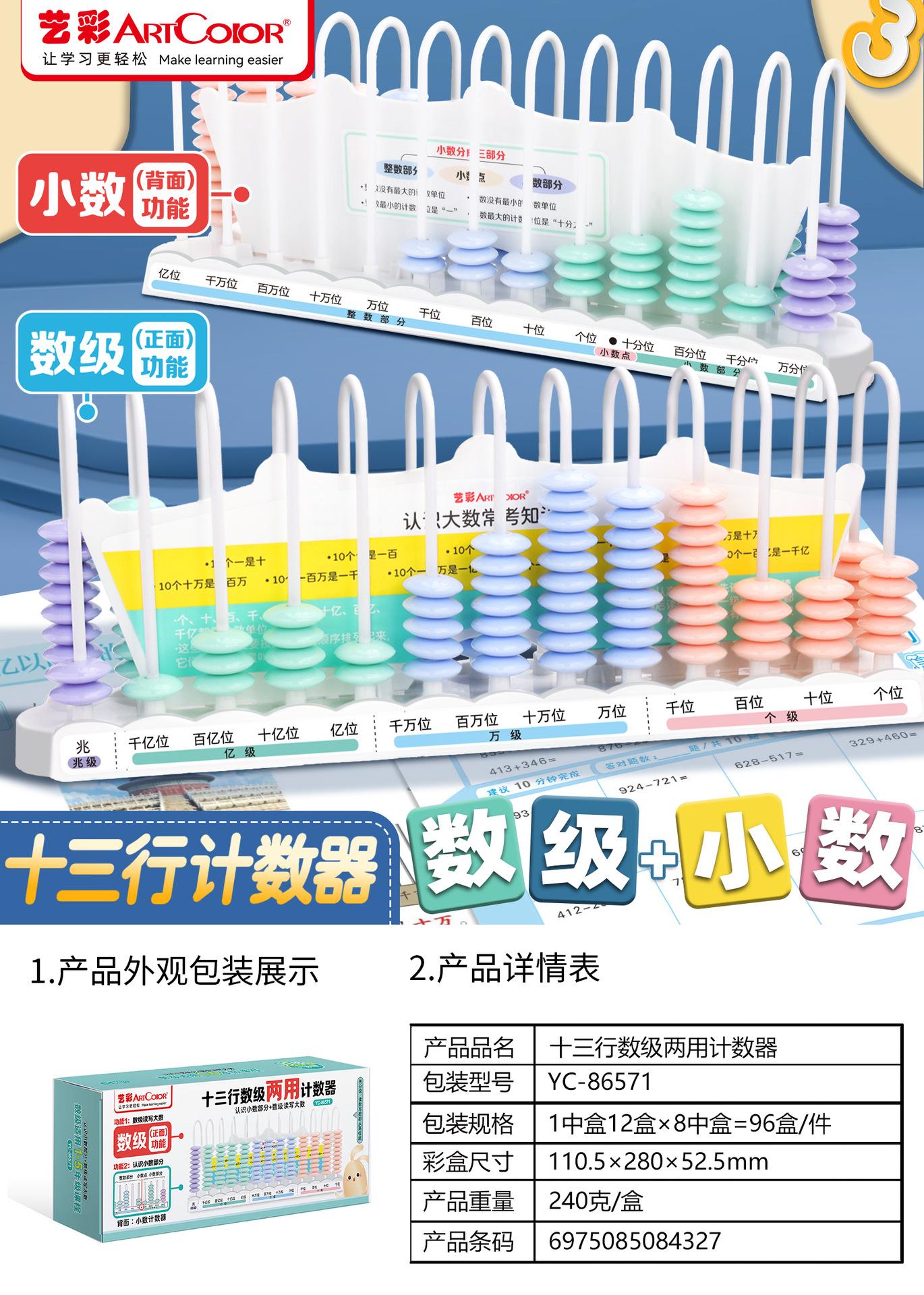 Contador Morandi de 13 líneas, material didáctico para operaciones matemáticas para alumnos de primaria.