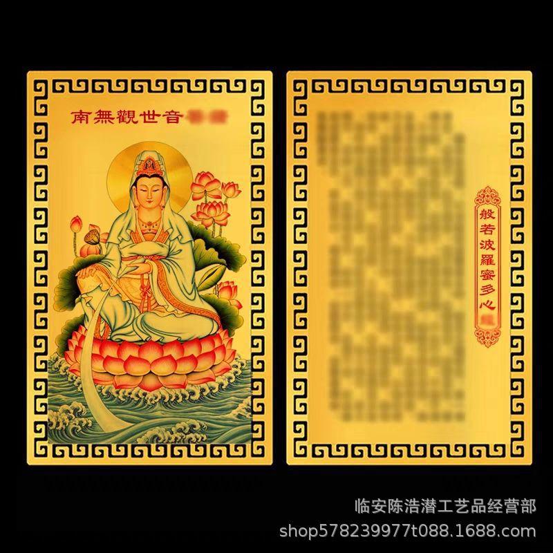Los fabricantes suministran la tarjeta de metal Nanno Guanyin Bodhisattva, la tarjeta del Sutra del Corazón de Guanyin que gotea, la tarjeta de aleación de aluminio y magnesio dorada.