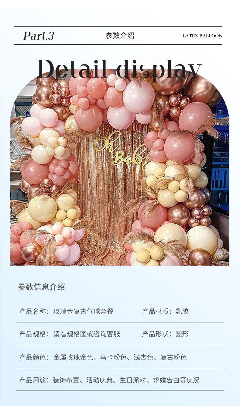 Paquete de Globos Oro Rosa Transfronterizo Ceremonia Fiesta Globos Vintage Diseño de Escena Cadena de Globos de Cumpleaños Paquete al por Mayor