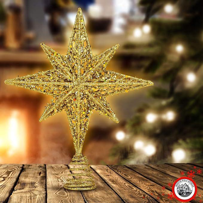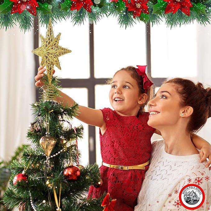 Nueva Decoración Navideña de Hierro Forjado Estrella de Cinco Puntas Luz LED Brillante Estrella para la Punta del Árbol de Navidad