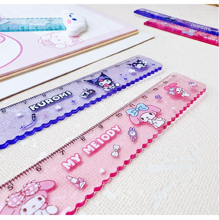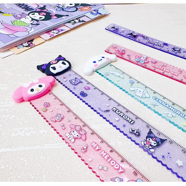 Regla Linda de Dibujos Animados Sanrio Kulomi para Estudiantes de Primaria Regla Especial Transparente con Escala Creativa de 15 cm Regla Marcador