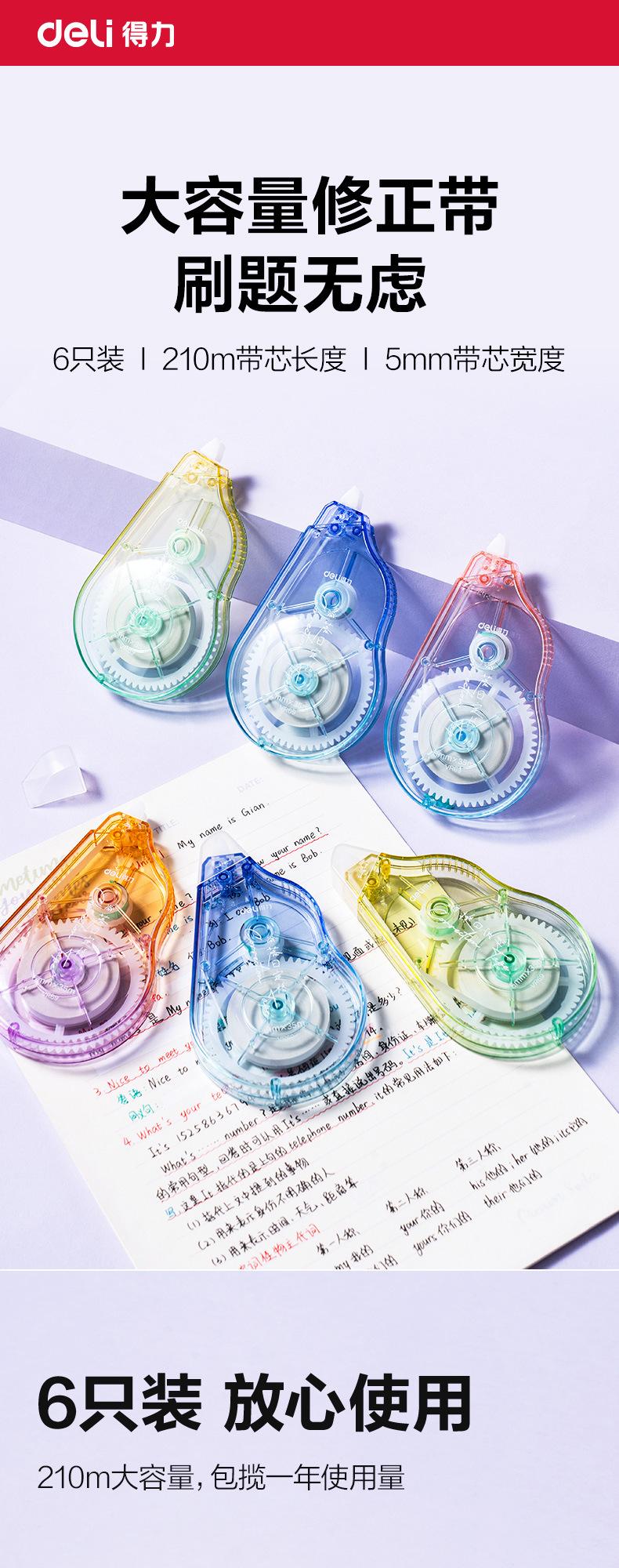 Cinta Correctora Silenciosa Deli para Estudiantes, Cinta Correctora Asequible de Gran Capacidad, Cinta Correctora Genuina