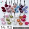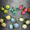 Rosa colorida con 3 rosas de diamantes para banquete de boda, decoración de flores falsas para pared de boda, paisaje de simulación de flores