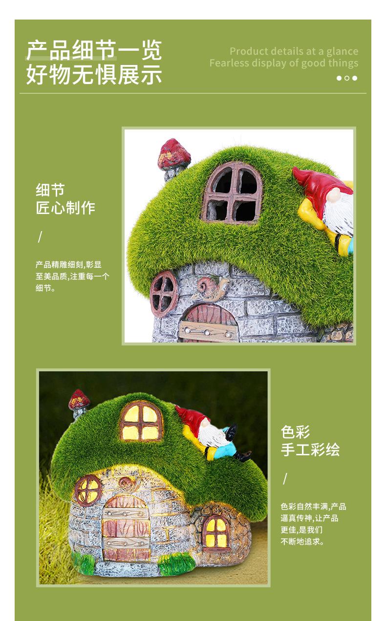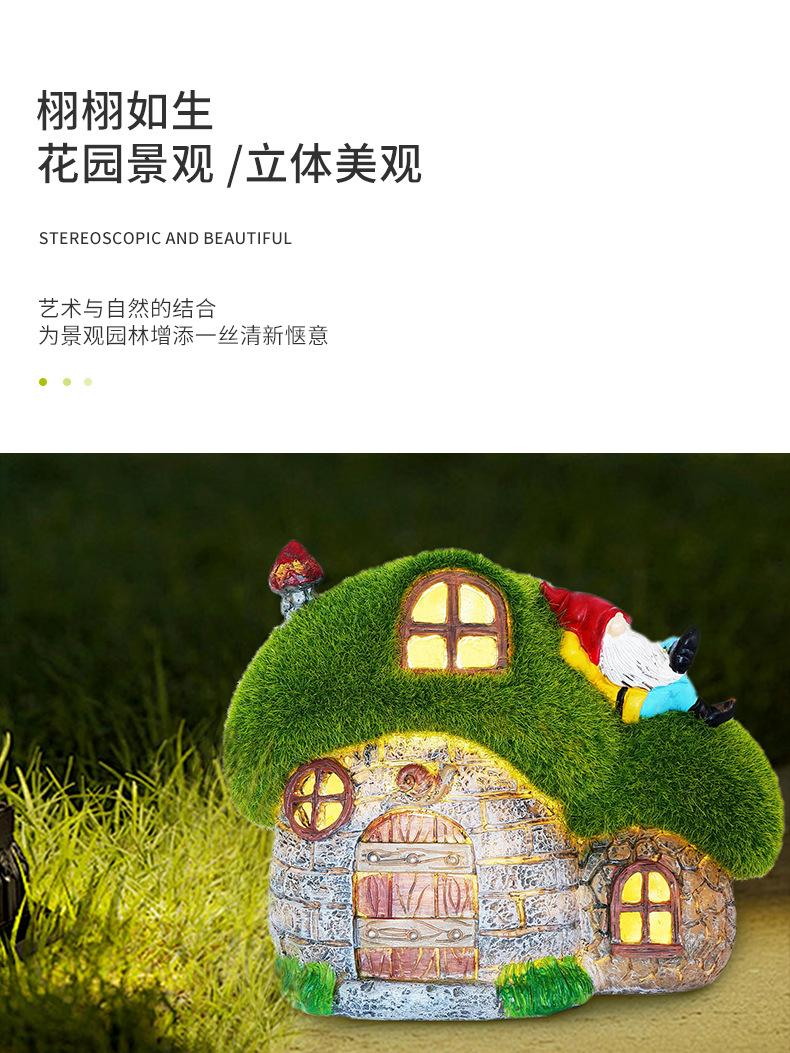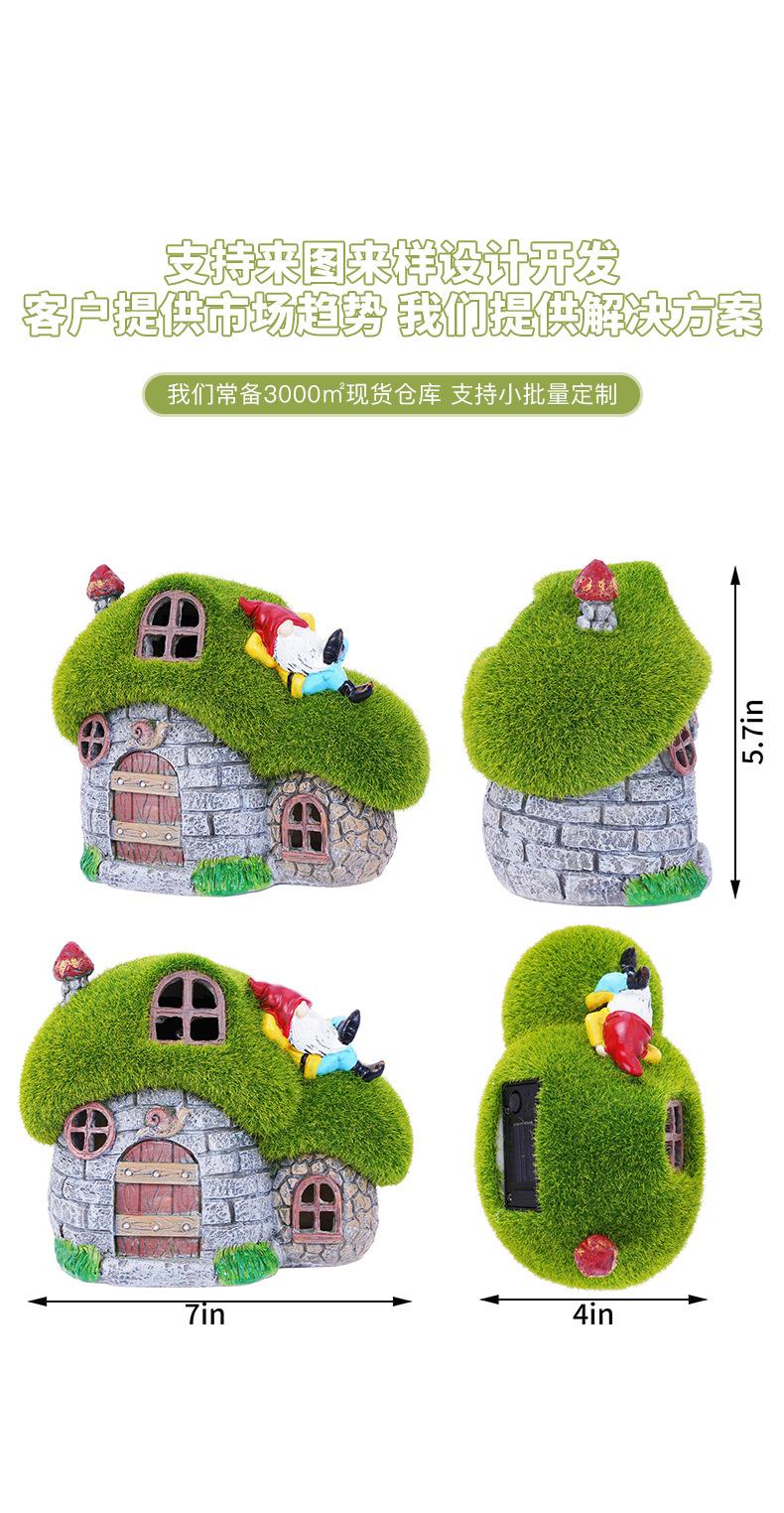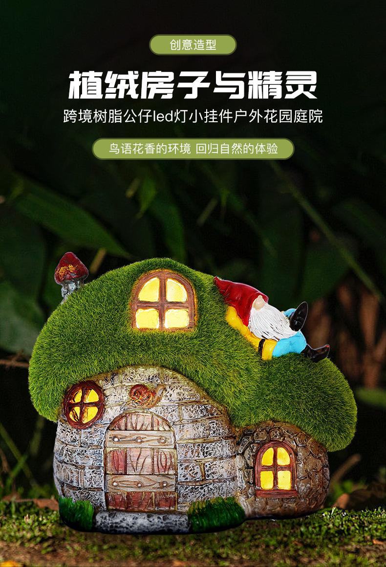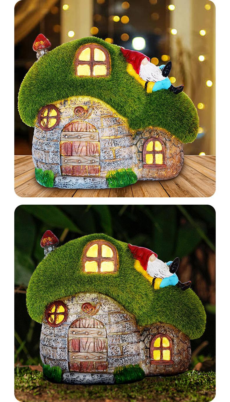 Artesanías de resina, casa de flocado y estatua de elfo para jardín, adornos para césped al aire libre, decoración, adornos de resina, iluminación