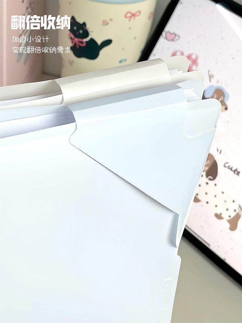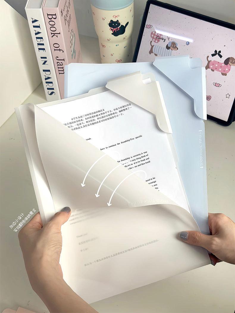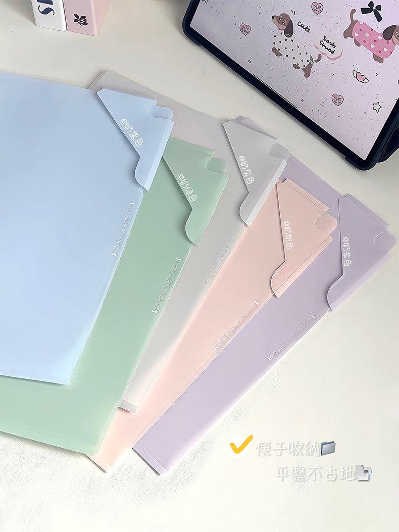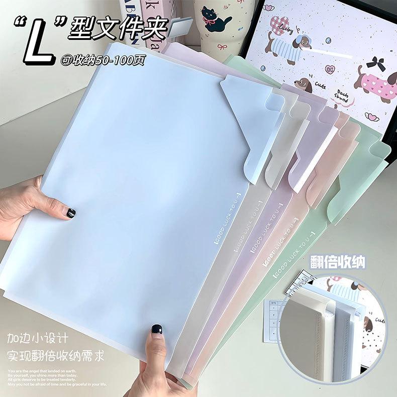 Carpeta de película A4 mejorada Morandi Color en forma de L para estudiantes, carpeta de almacenamiento de datos, gran capacidad, lotes