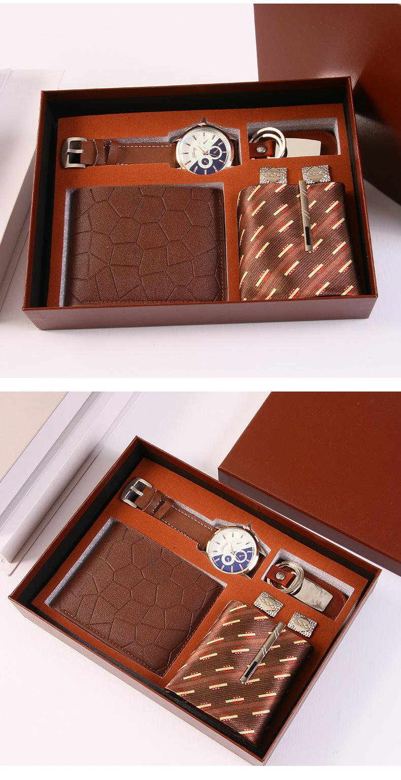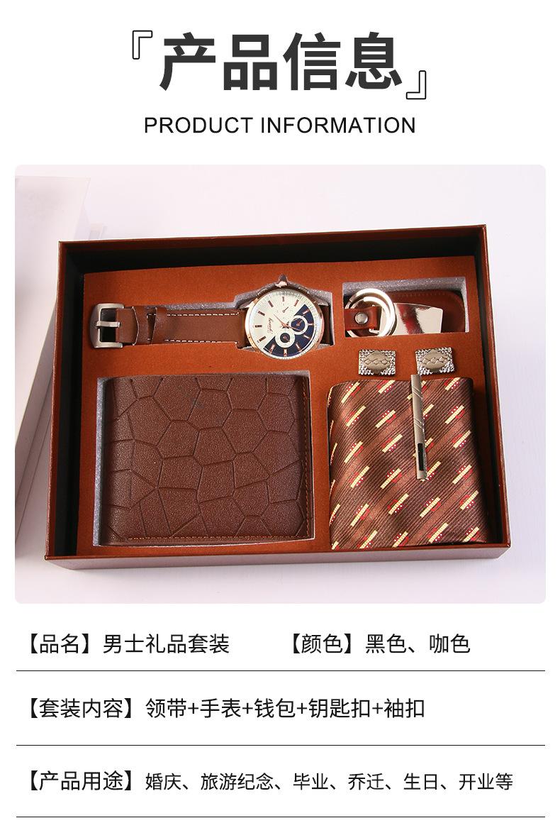 5-piece set in black (tie + watch + wallet + keychain + cufflinks), 5-piece set in coffee color (tie + watch +...
