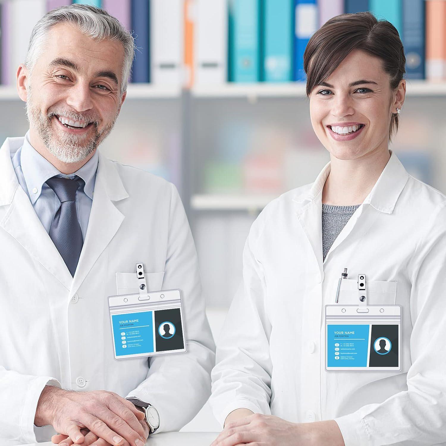 Porta credencial de PVC transparente, impermeable, de goma suave, juego de tarjetas de certificado de trabajo, juego de tarjetas de credencial de trabajo, juego de tarjetas de fábrica, juego de tarjetas con clip y hebilla
