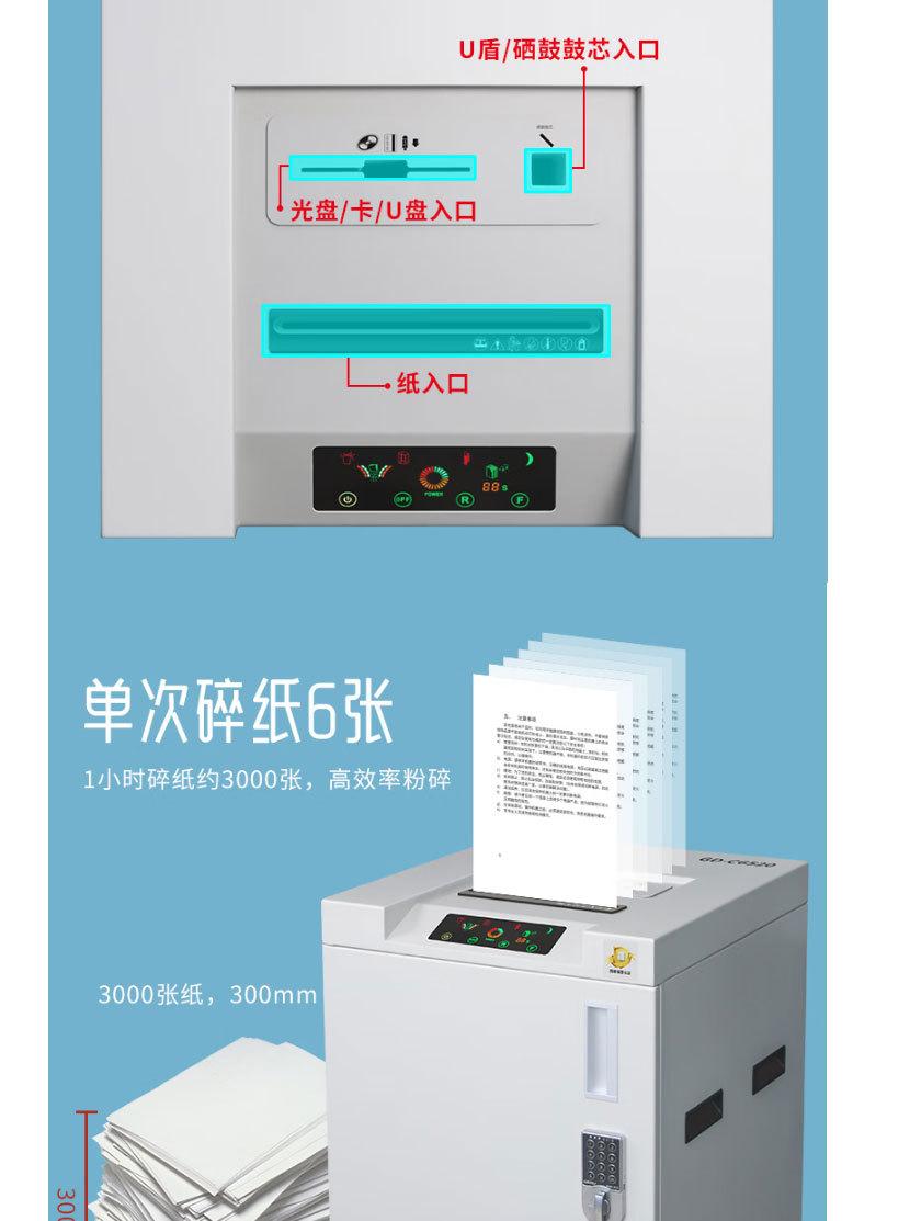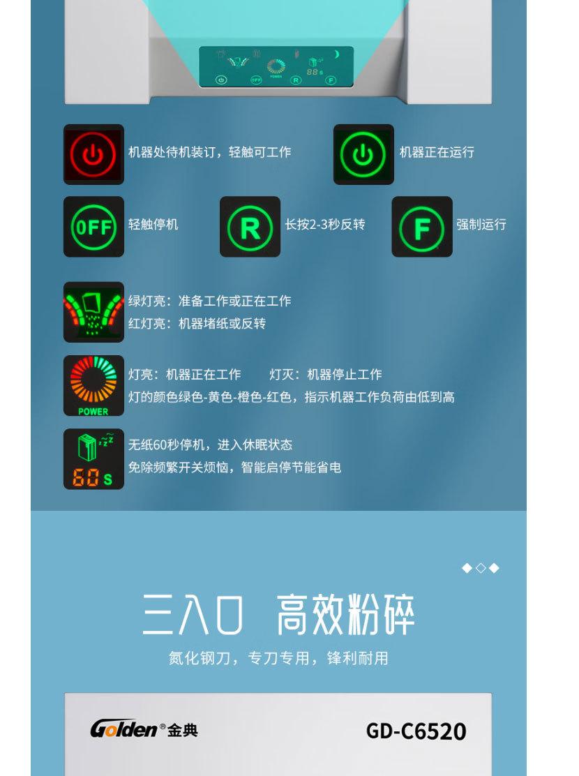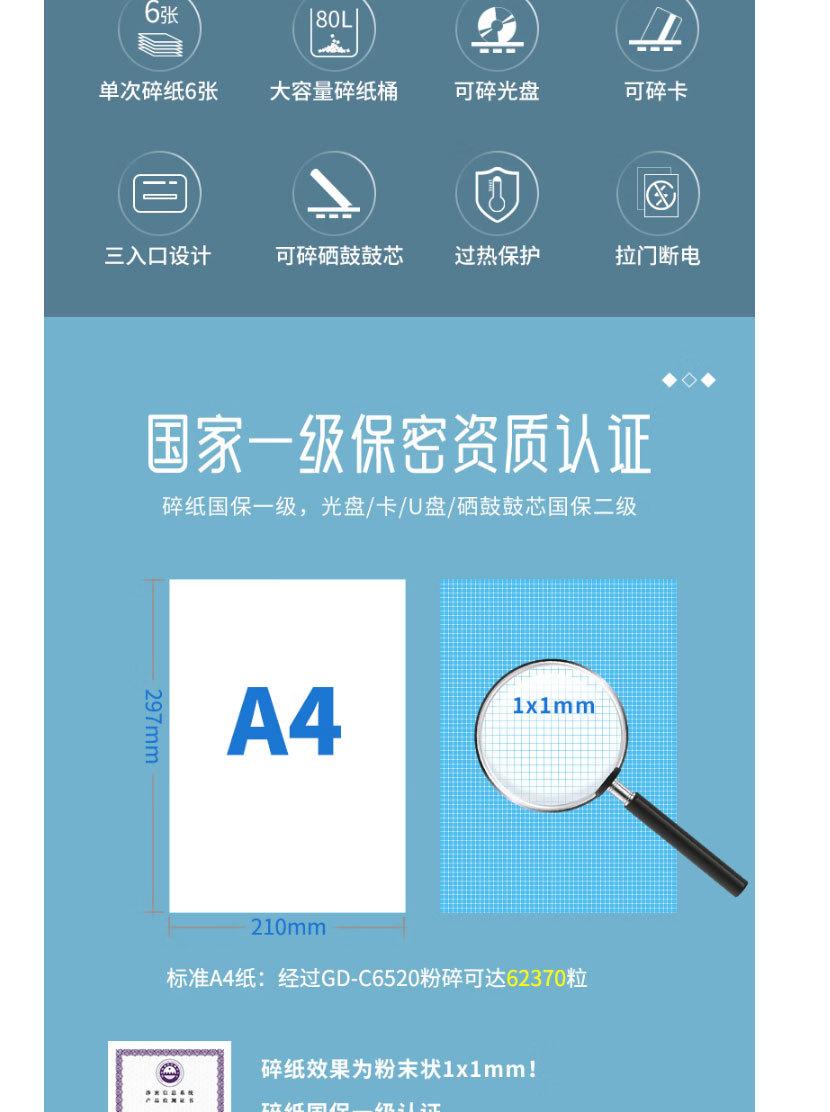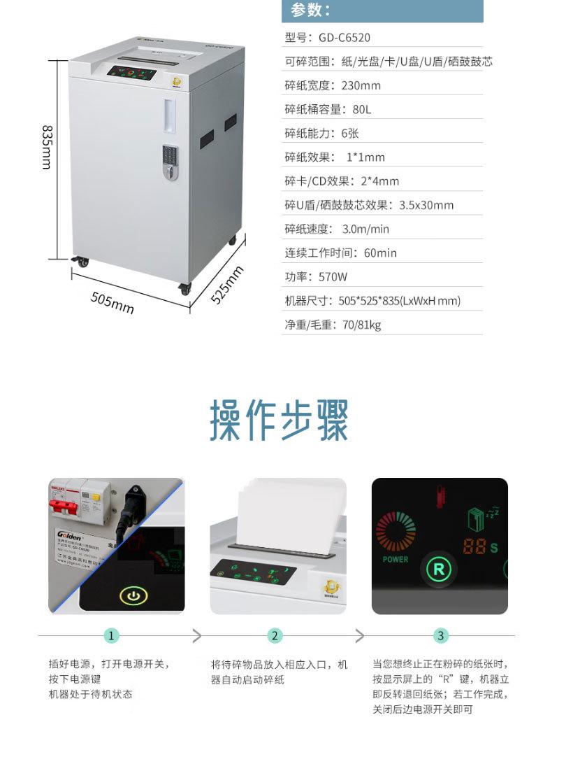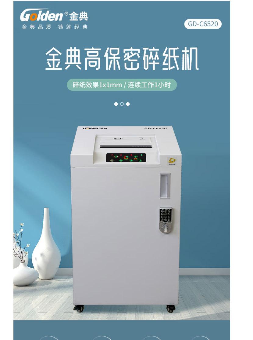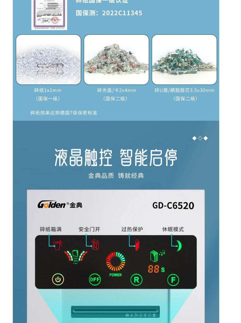 Destructora de papel Jin Dian GD-C6520, tritura papel en 1 hora, certificada por el estado, tamaño A4, capacidad para 6 tarjetas de 80 l y CD.