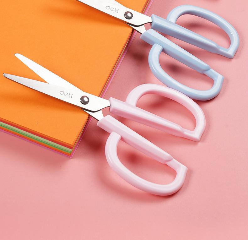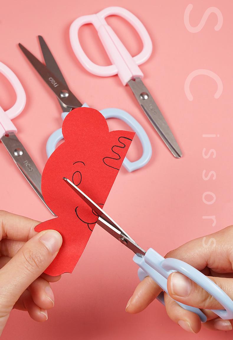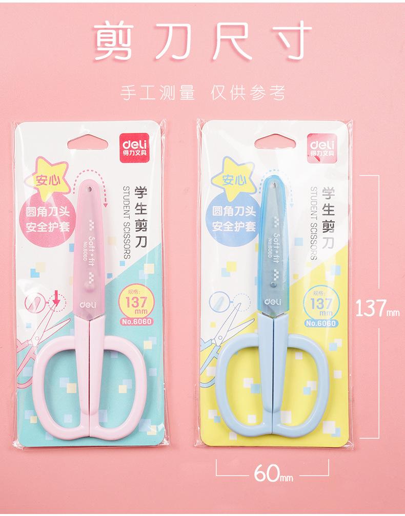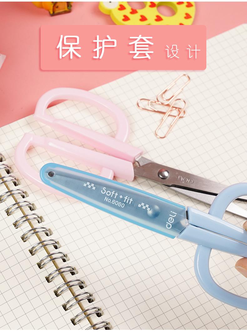 Tijeras de mano para jardín de infantes, papelería Deli 6060, con funda, cortador de papel, tijeras para estudiantes y niños, tijeras al por mayor
