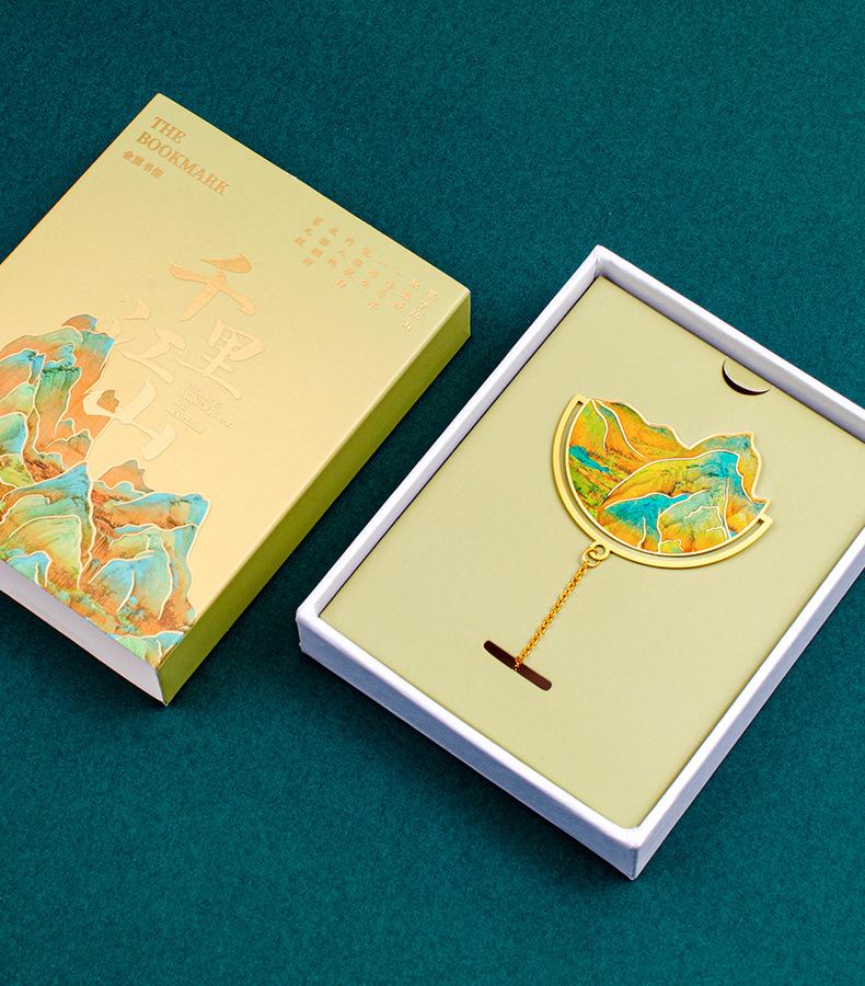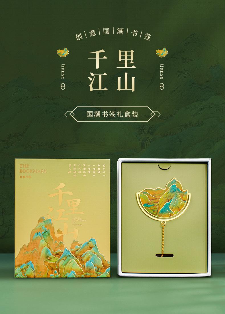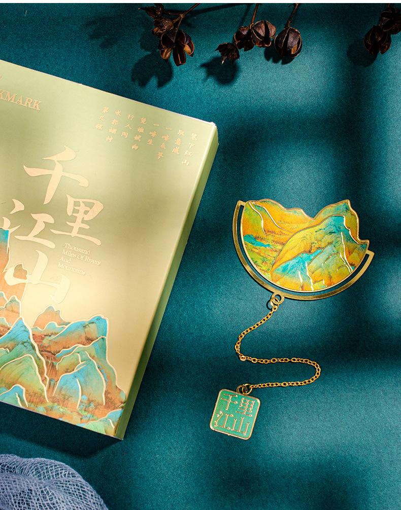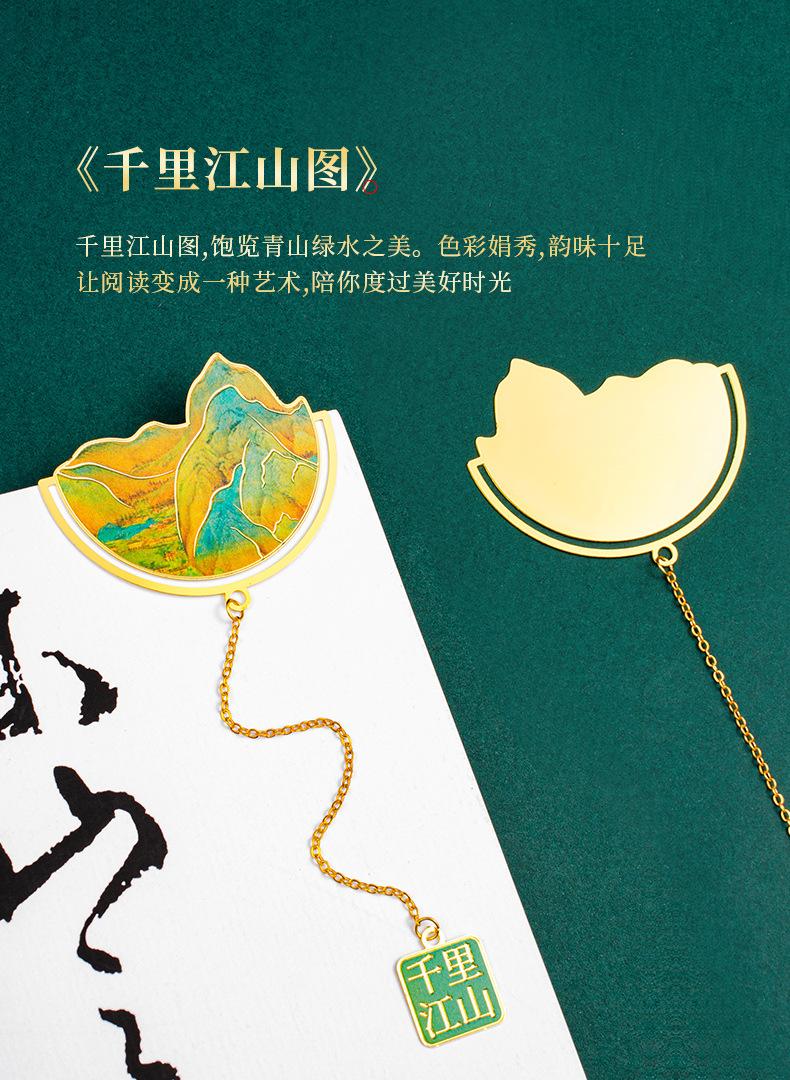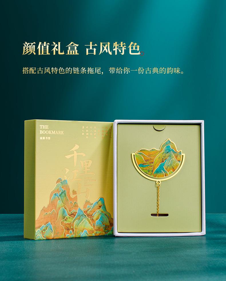 Cielo Mil Millas Jiangshan Marcapáginas Estilo Chino Metal Latón Marcapáginas Caja de Regalo Ciudad Prohibida Clásico Sentido Senior Temporada de Graduación