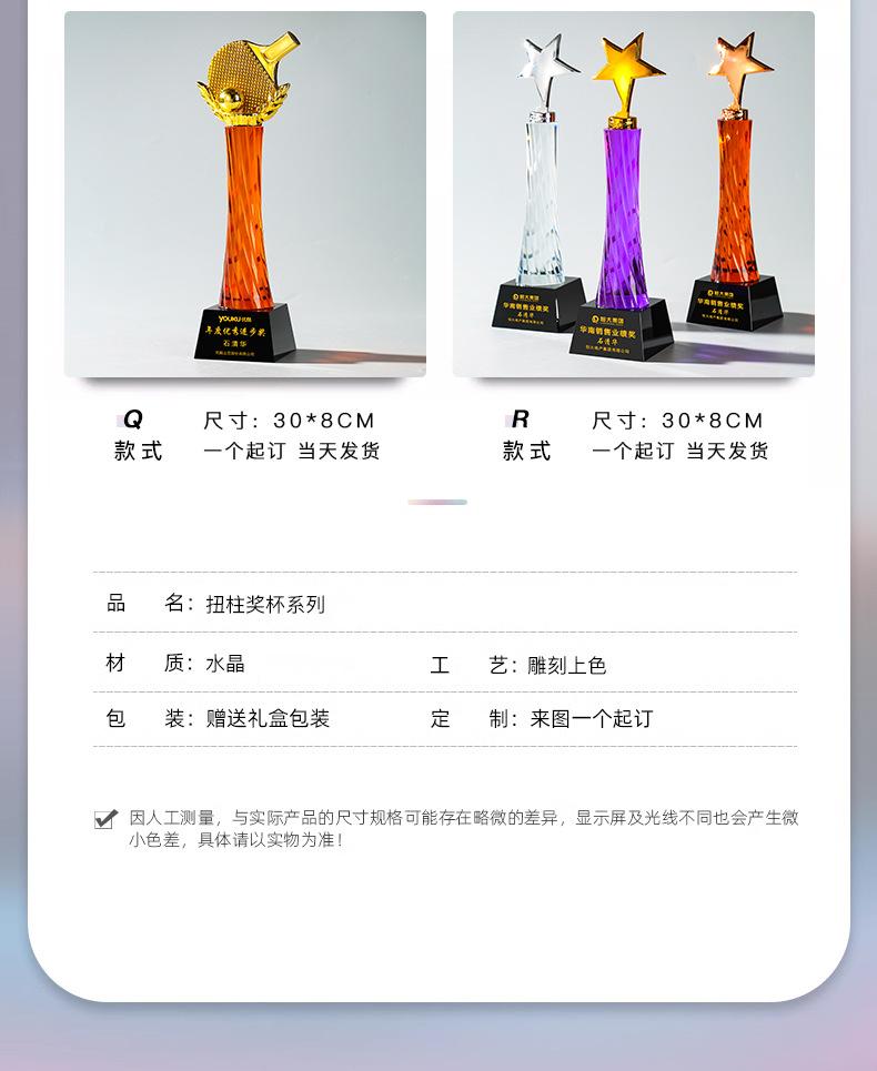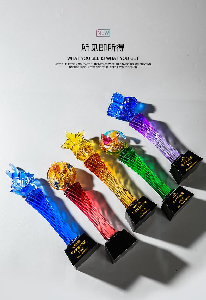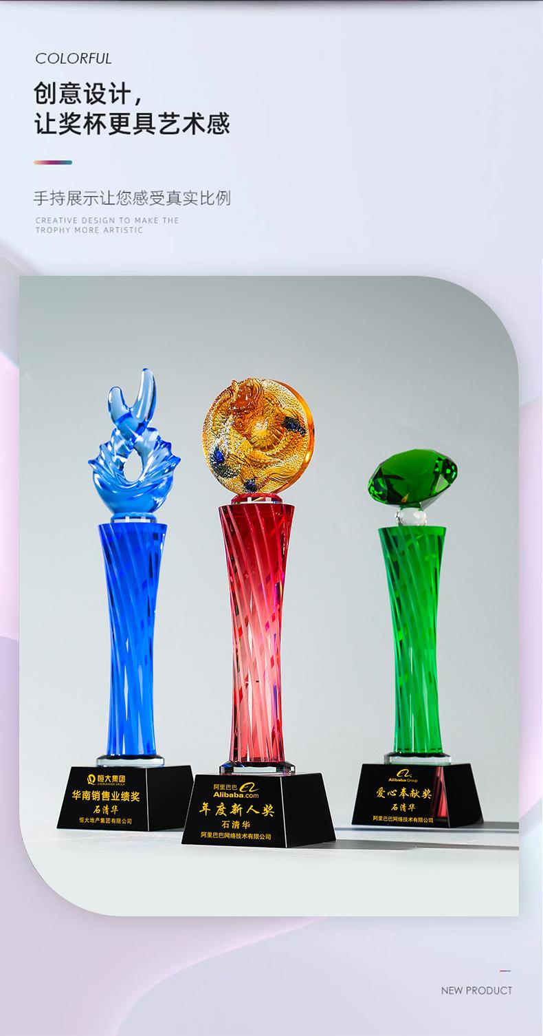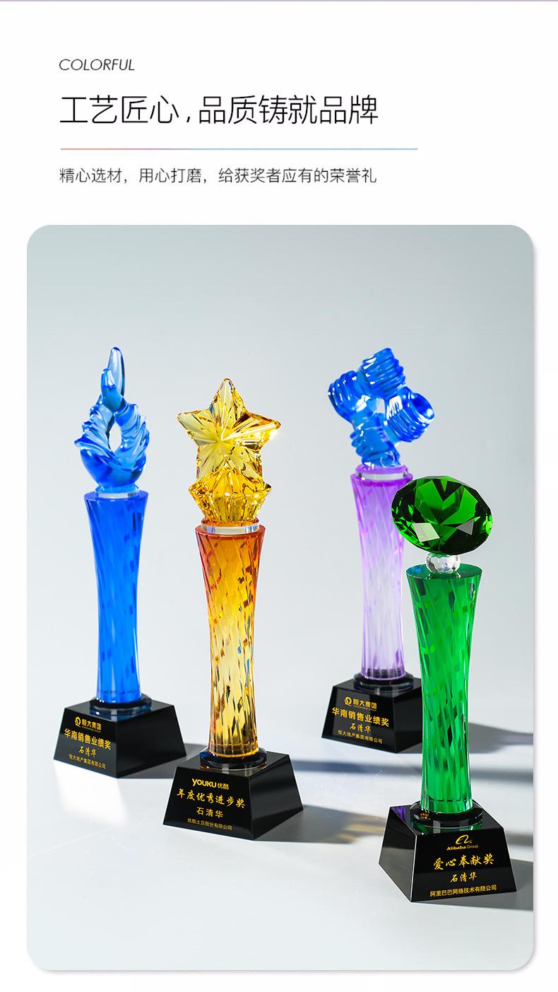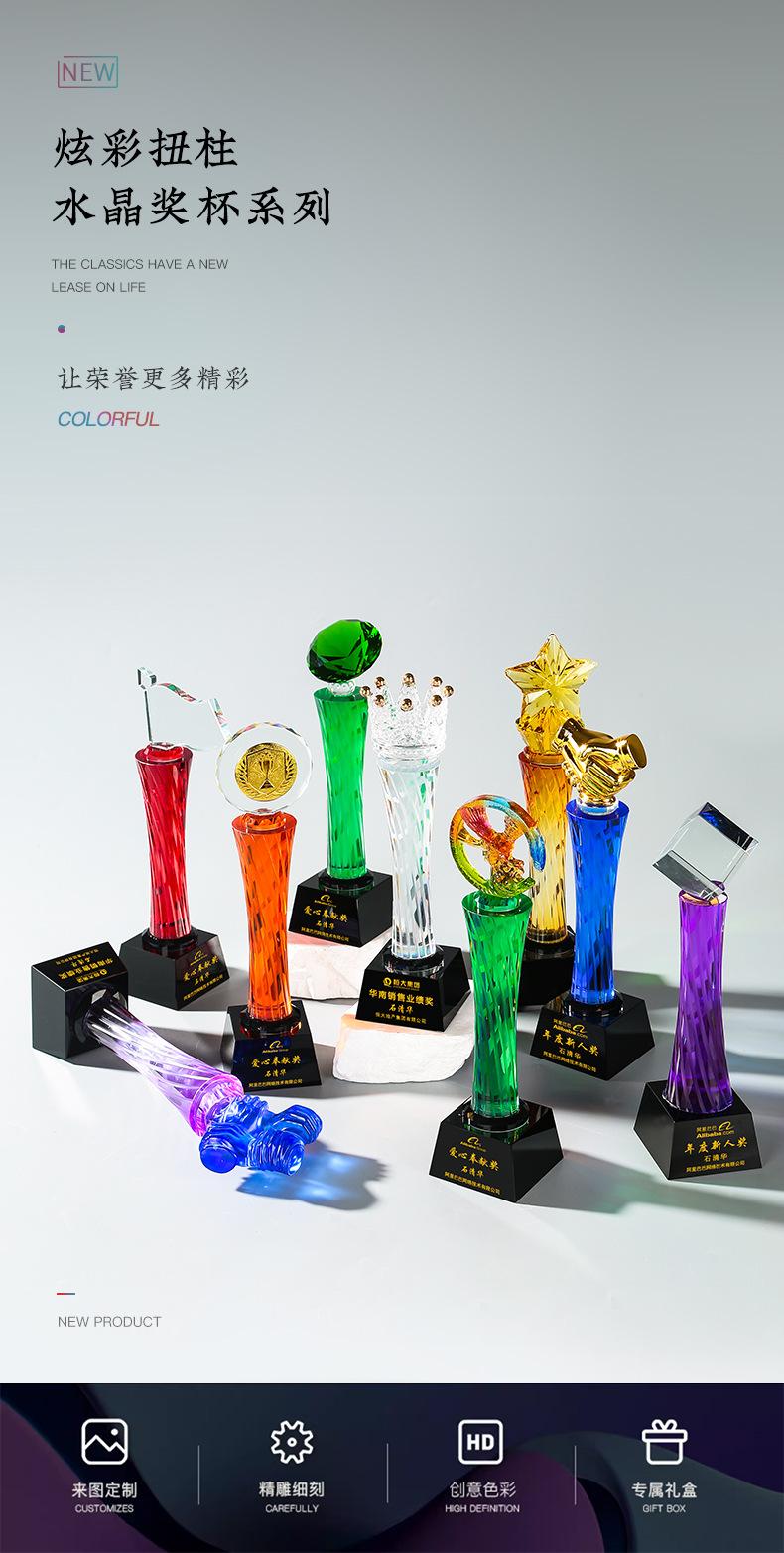 Nuevo Diamante Creativo Pulgar Vidrio Cristal Color Columna Torcida Trofeo Danza Música Juegos Reunión Anual Adornos