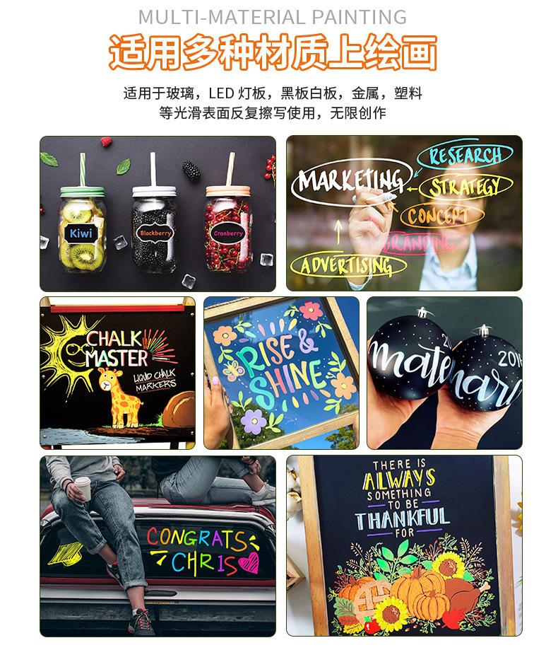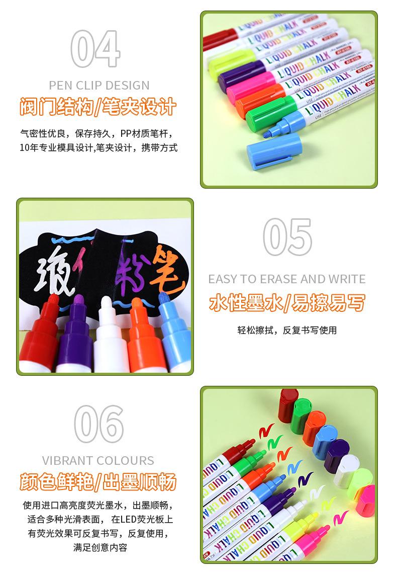 Aiye Amazon Color Tiza Líquida Libre de Polvo Soluble en Agua Borrable Marcador Graffiti Publicitario Pizarra Luminosa Resaltador