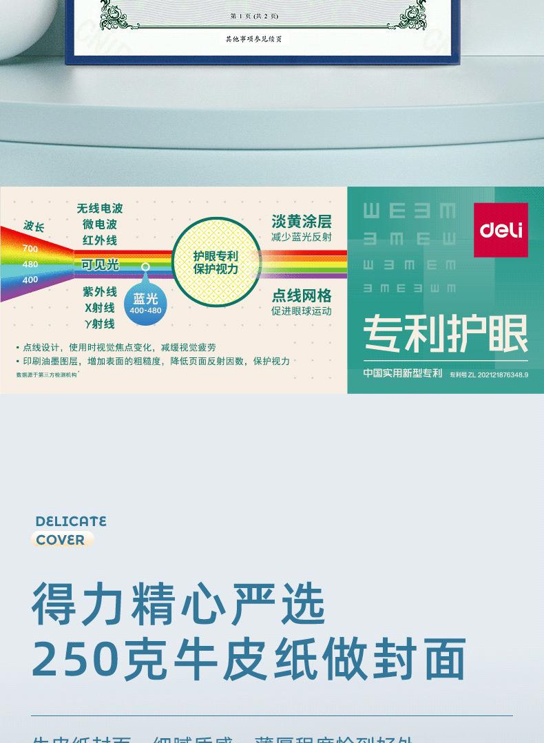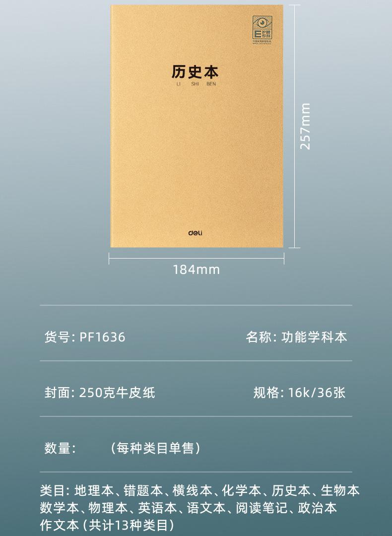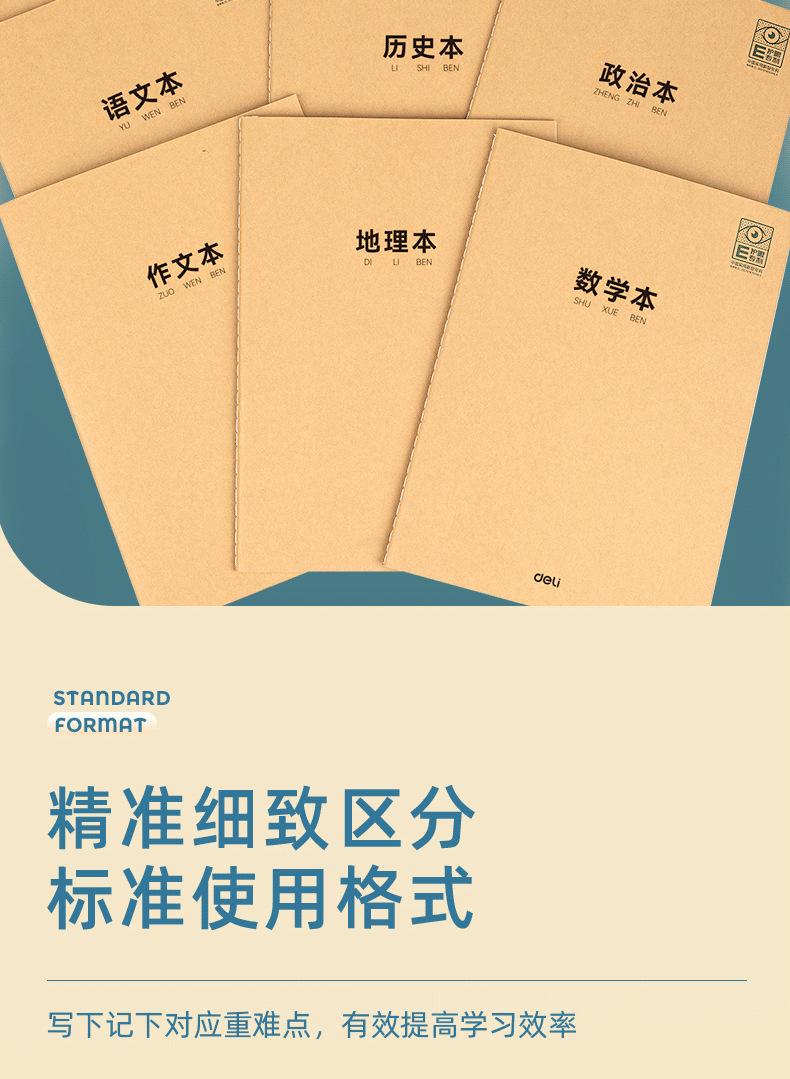 Deli PF1636 Cuaderno de ejercicios de protección ocular para estudiantes de secundaria, preparatoria y preparatoria. Preguntas incorrectas. 16K. Matemáticas en chino e inglés. Línea horizontal.