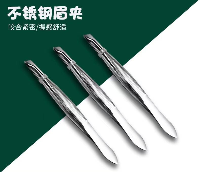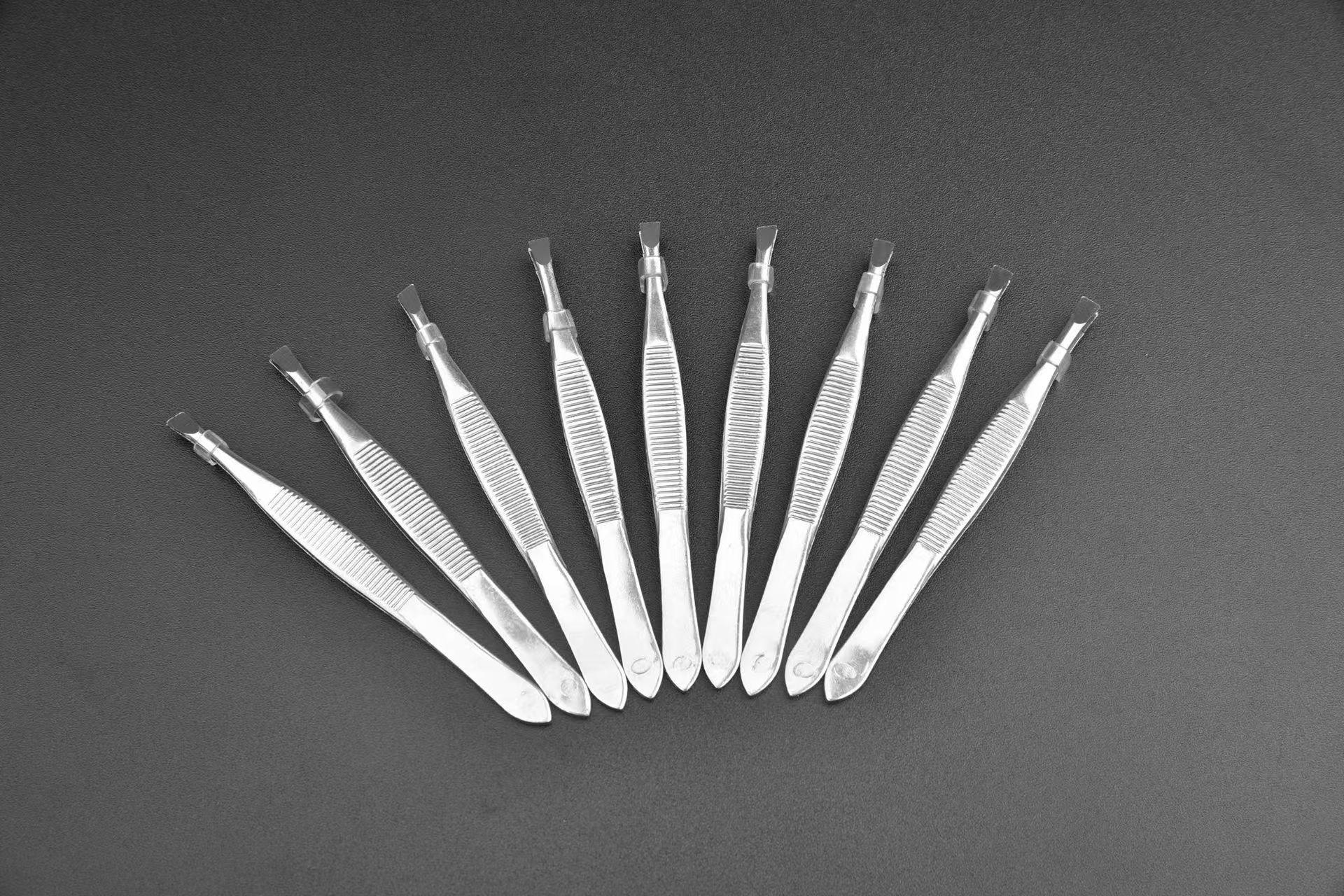 Venta al por mayor de fábrica en stock 430 pinzas planas para cejas horizontales negras de acero inoxidable pinza para cejas pinza para pestañas pinza para cejas