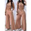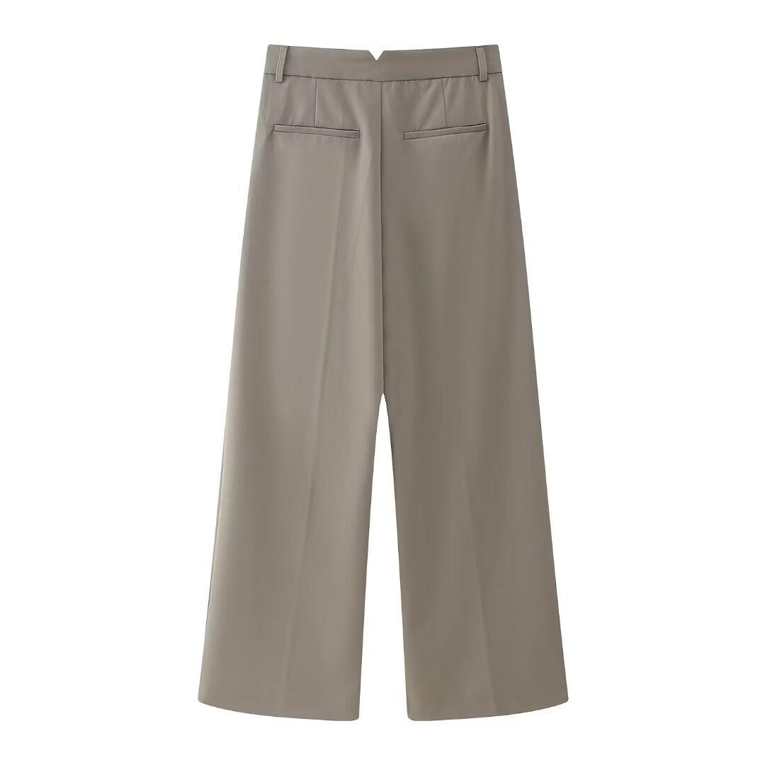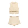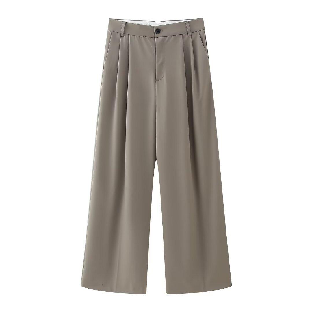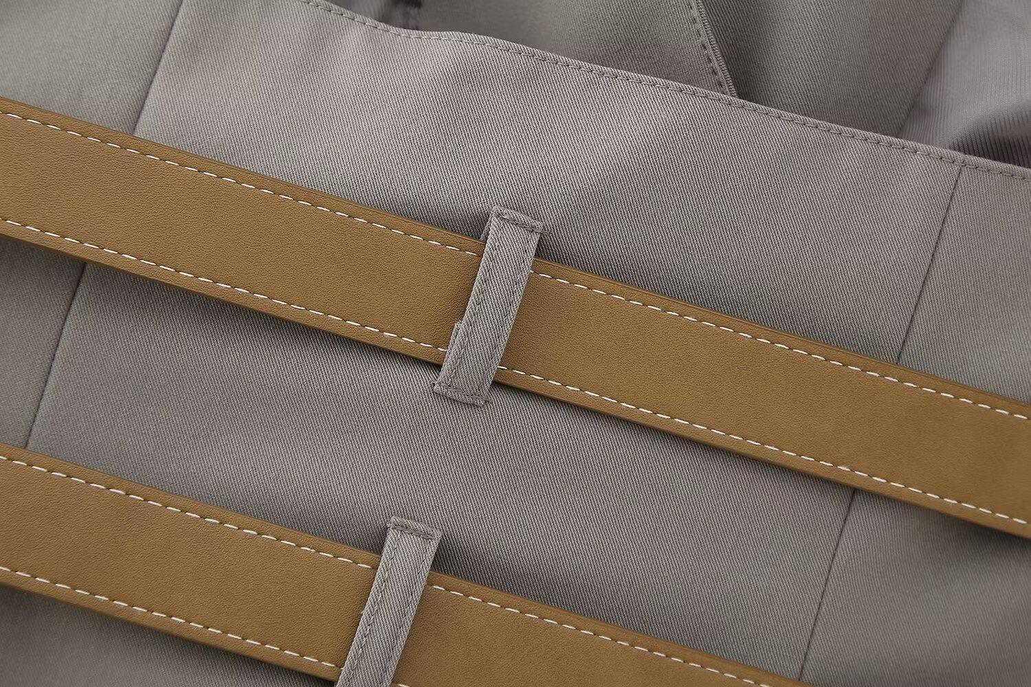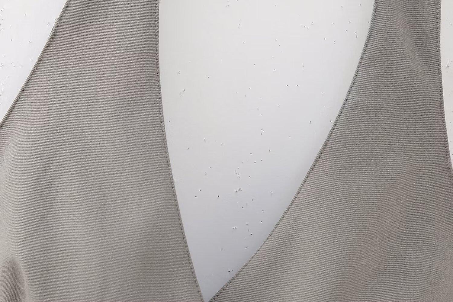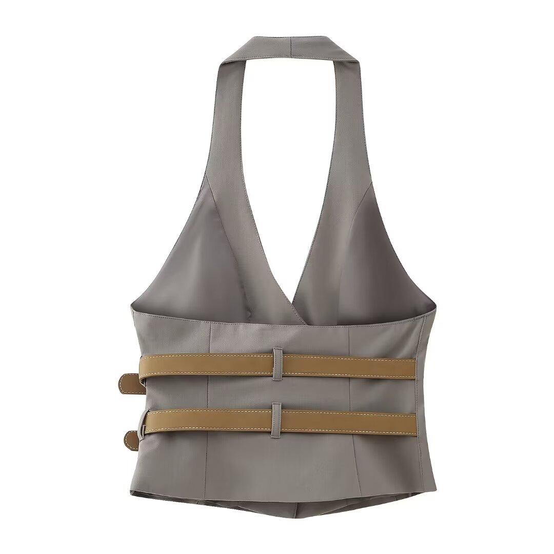 Primavera 2024 Nuevo Europeo y Americano Transfronterizo para Mujer Cinturón Caqui Top Chaleco Halter + Pantalón Drapeado Suelto