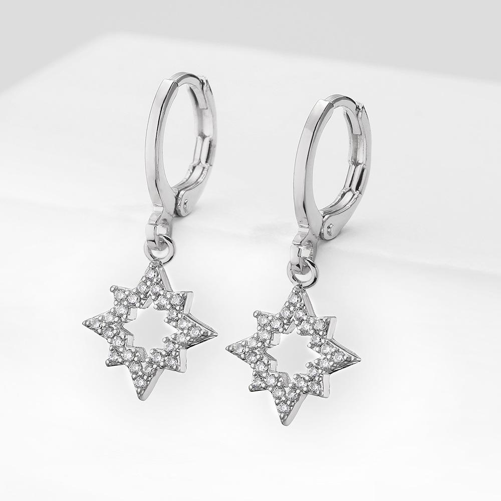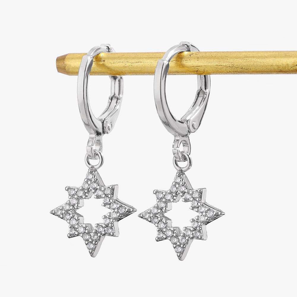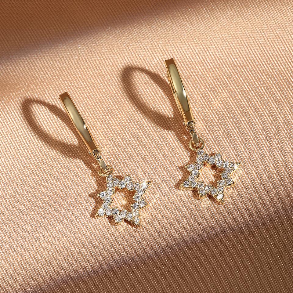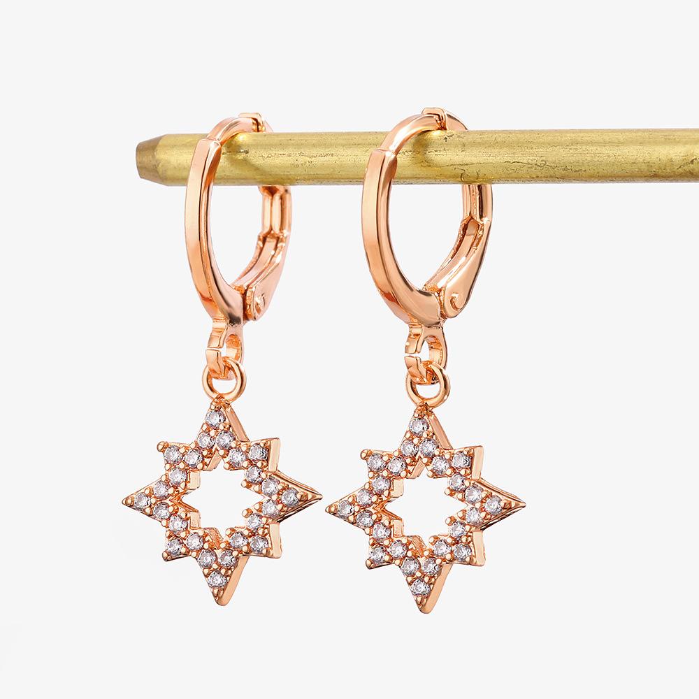 Compra Nuevos pendientes de estrella de ocho hombres con incrustaciones de circonitas micro simples y súper llamativos de tendencia 2024 para damas, populares en Corea del Sur. al por mayor en Joom.pro