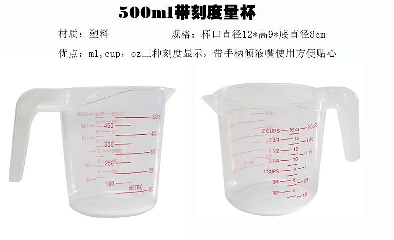 Vaso Medidor de Plástico Vaso oz Escala de Medición para Jugo y Té con Leche, Medición en Mililitros, Lote 250/500/1000ml, Escala Roja