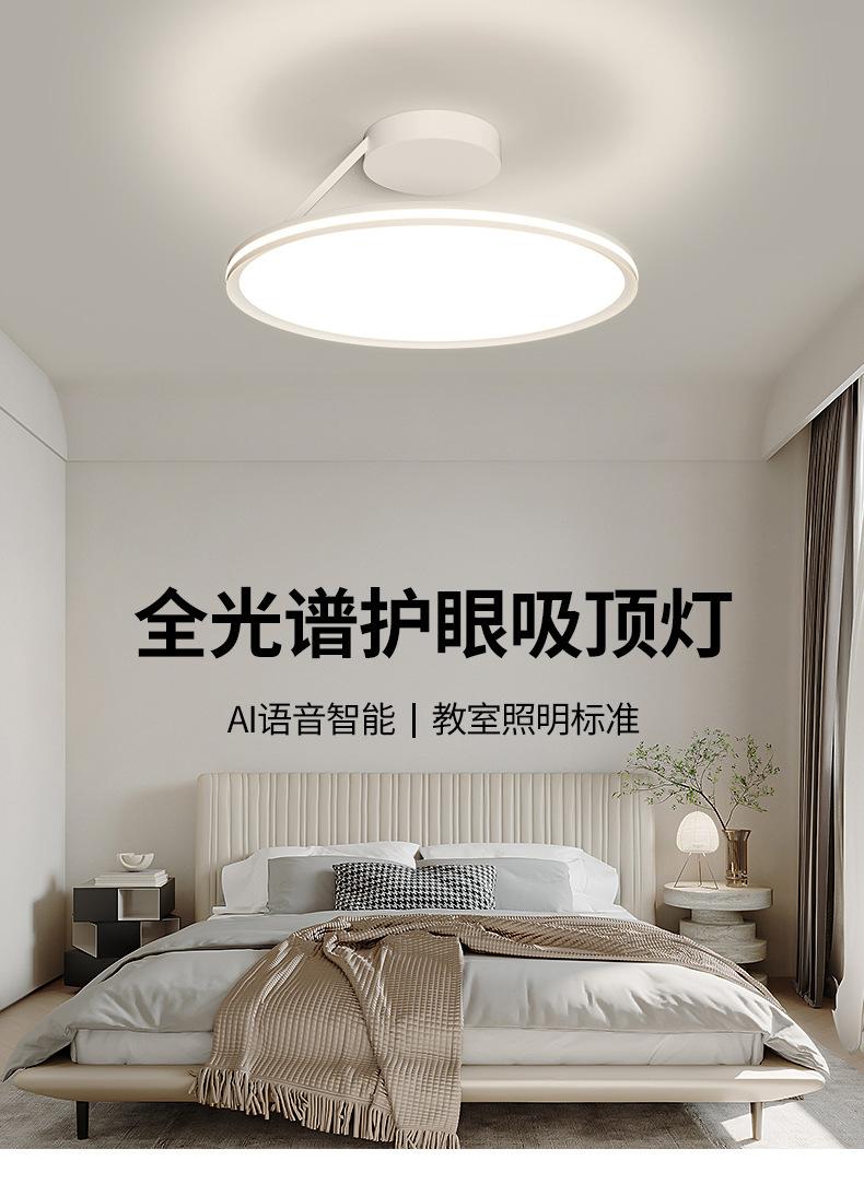 2025 nueva lámpara de techo ultradelgada de espectro completo para dormitorio principal, lámpara de dormitorio, lámpara de habitación, estudio, minimalista, lámparas inteligentes de Zhongshan