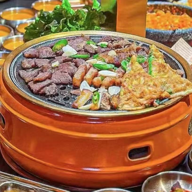 [nombre del producto]Parrilla de carbón coreana comercial Xita parrilla de carbón de la abuela parrilla de carbón celebridad de internet tienda de barbacoa parrilla redonda para barbacoaGran cantidad, buen precio, se puede imprimir el logotipo.