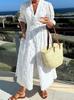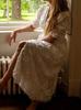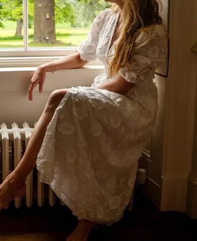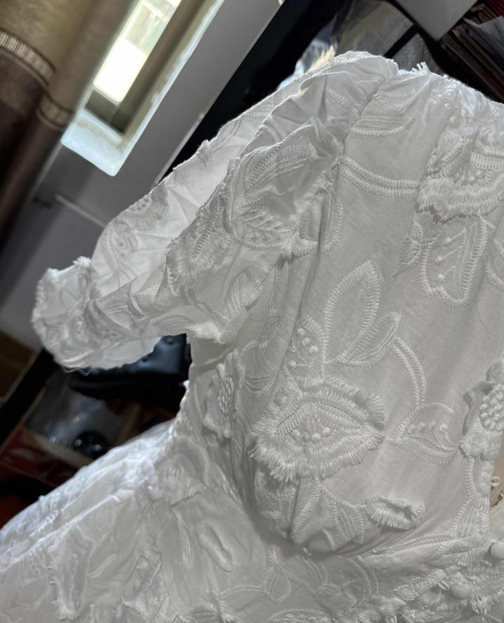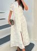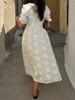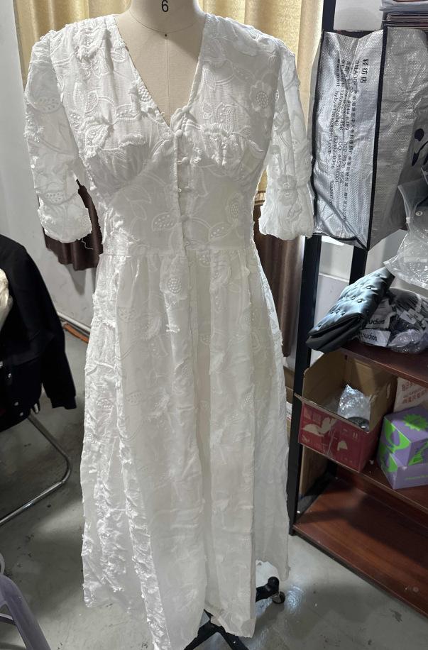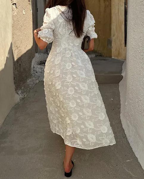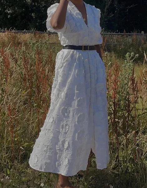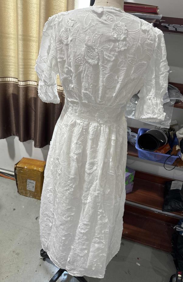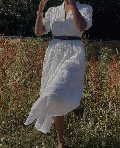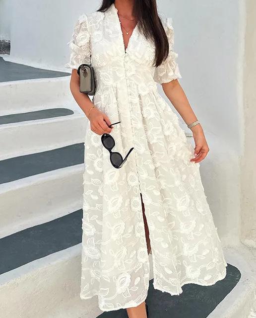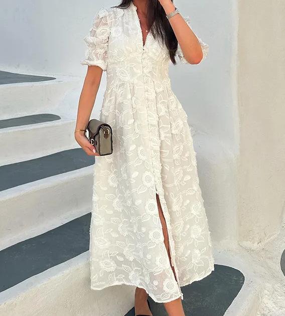 Vestido de verano 2024 con cuello en V y mangas abullonadas, falda abierta bordada blanca, elegante, para uso diario, transfronterizo europeo y americano