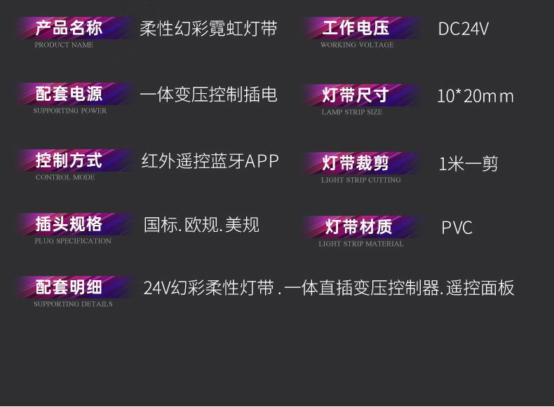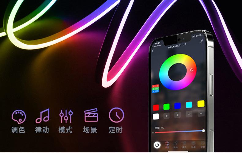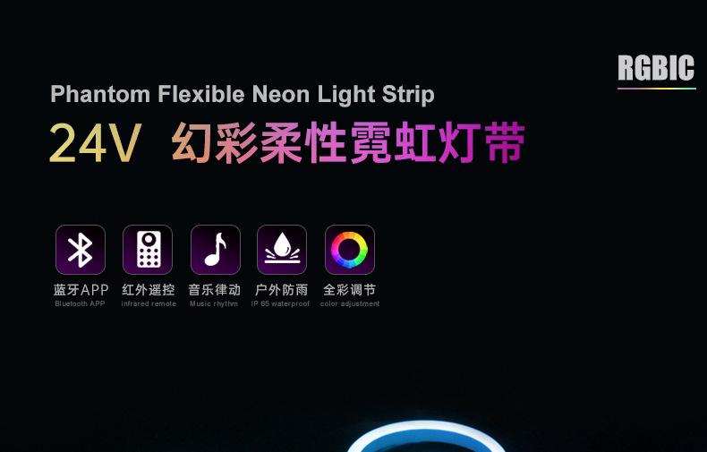 Luz de neón mágica flexible de 24v transfronteriza con enchufe de 110V220V a todo color APP Bluetooth RGBIC traje de caja de color