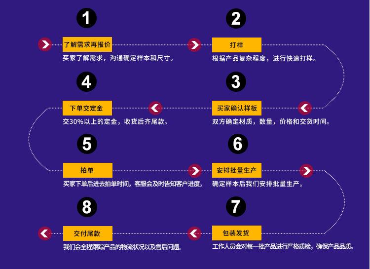 2. No se garantiza que el producto real coincida con las fotos promocionales. El producto real, el color y el brillo de las imágenes no pueden utilizarse como criterios de aceptación. Los criterios de aceptación están sujetos a las muestras selladas de ambas partes.