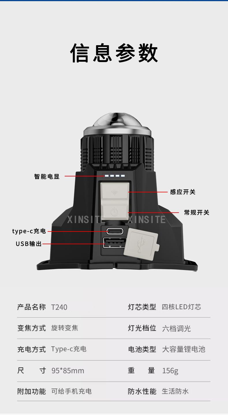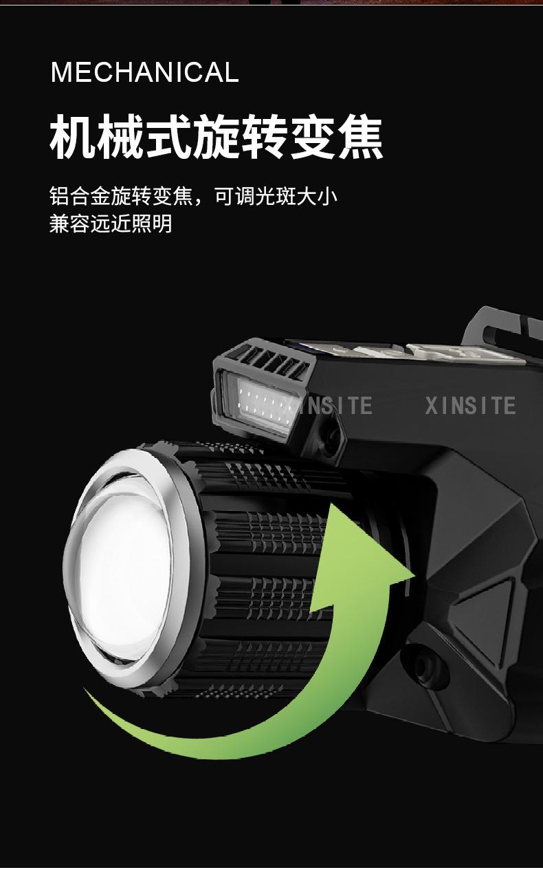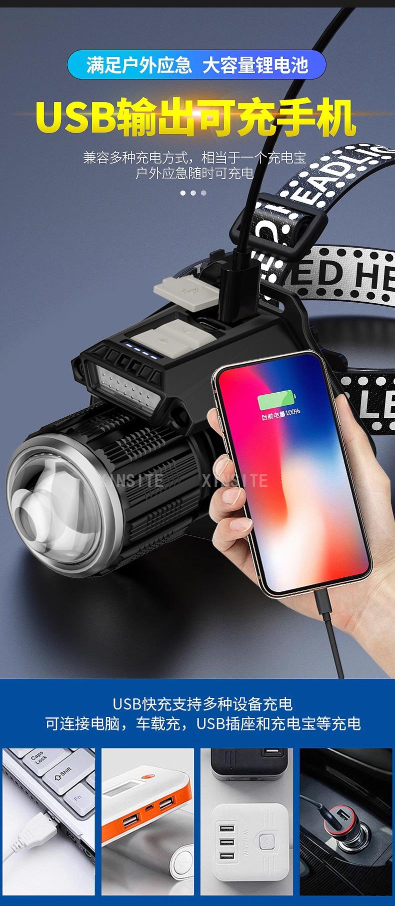 Faro nuevo para exteriores con zoom giratorio de largo alcance, luz fuerte, montado en la cabeza, de larga duración, lámpara frontal para buceo montada en la cabeza