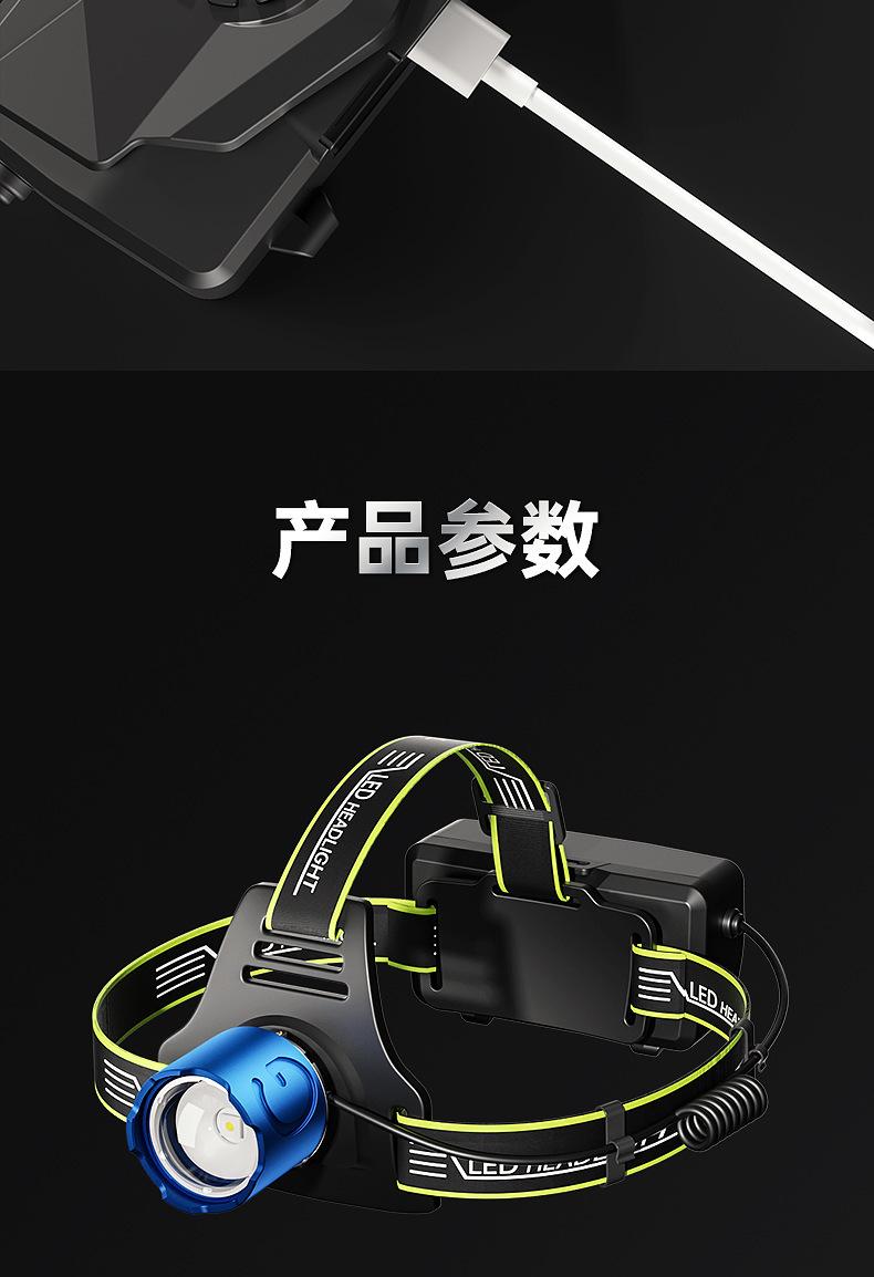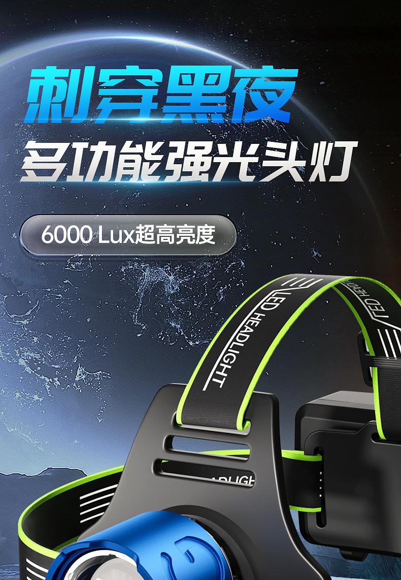 Linterna frontal superbrillante recargable con cabezal transfronterizo, ideal para pesca nocturna al aire libre, iluminación exterior de larga duración.