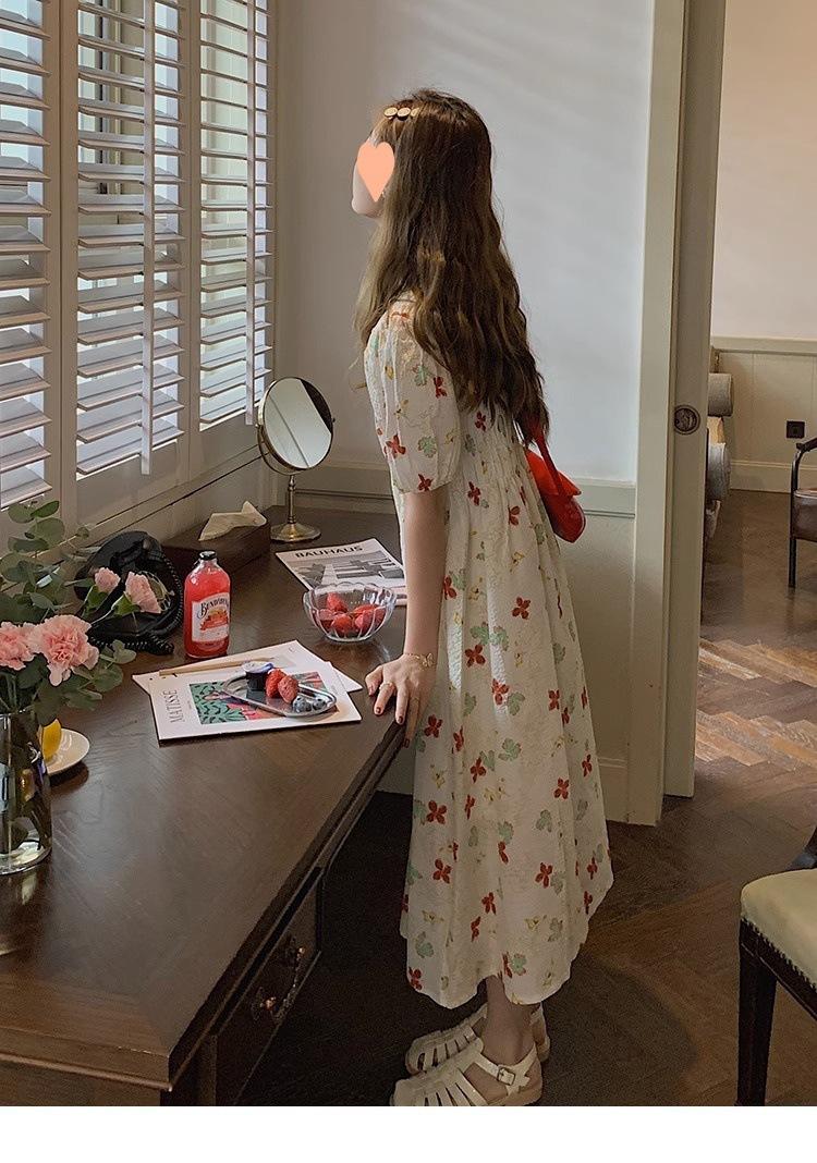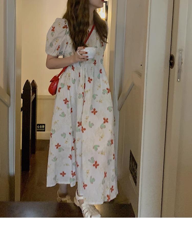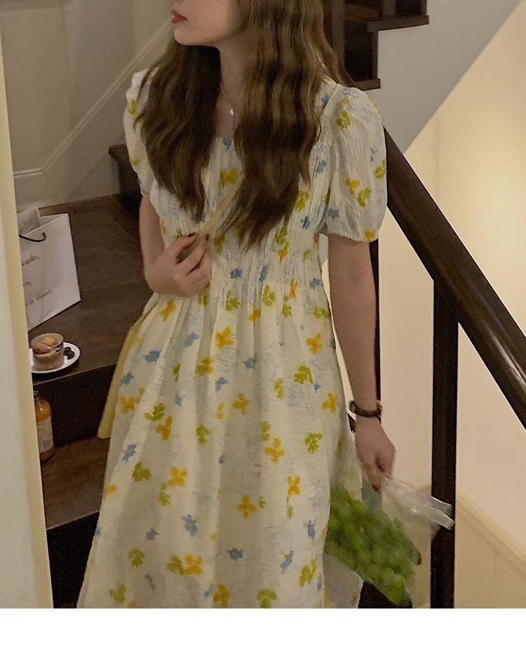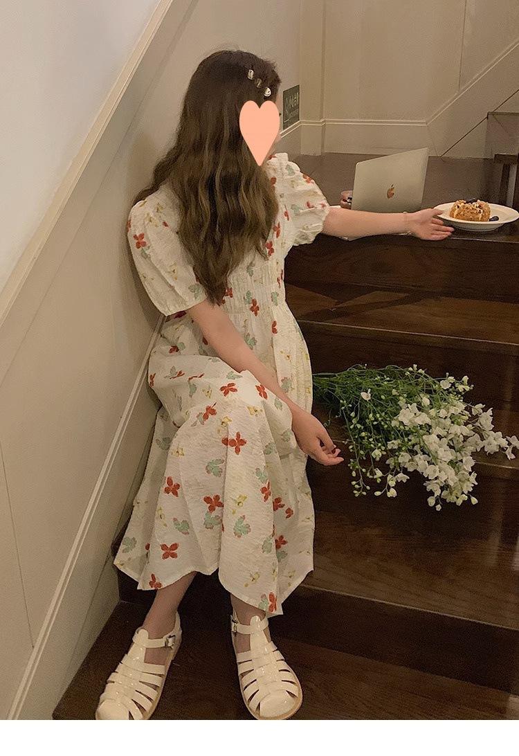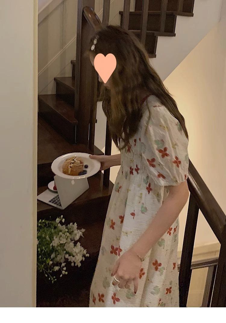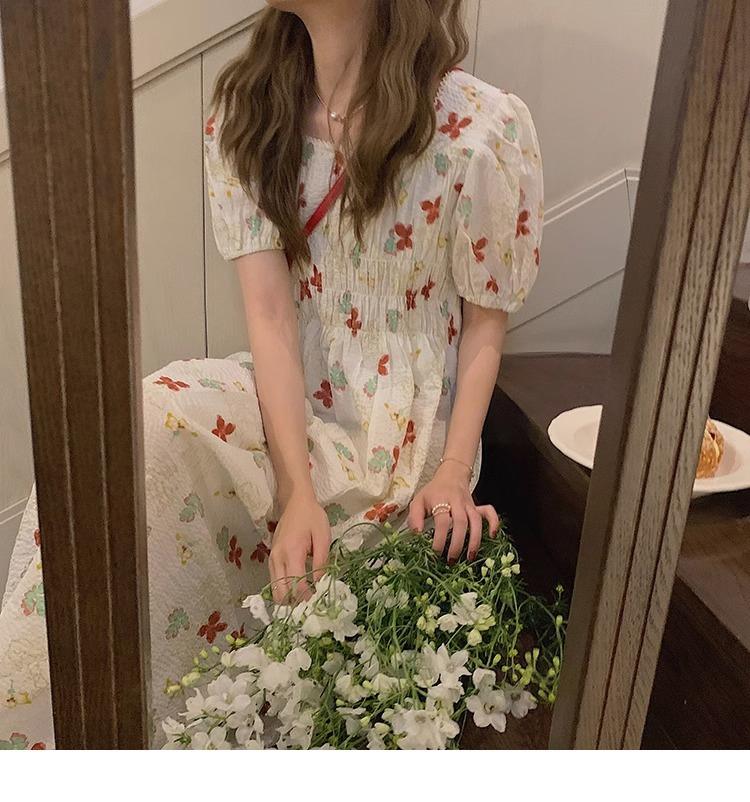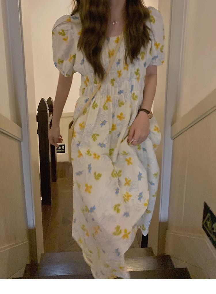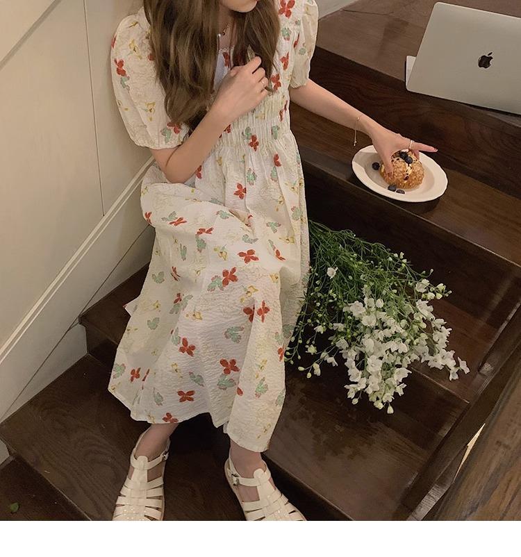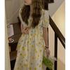 2025 Nuevo Estilo de Verano Vestido de Cuello Cuadrado Manga Abullonada Cintura Francesa Falda Floral Pequeña para Niña