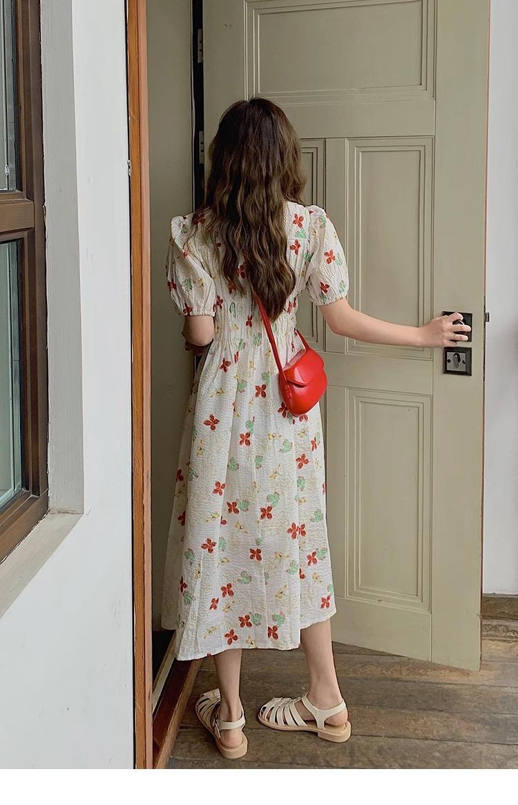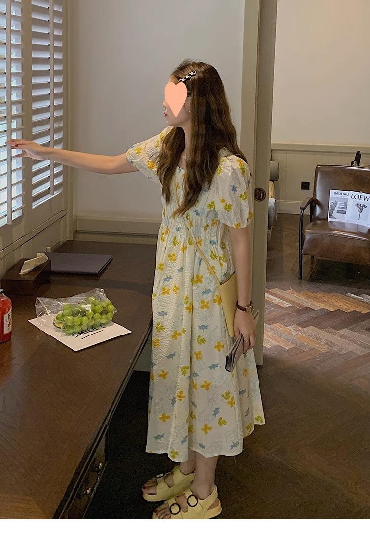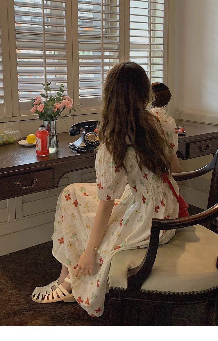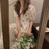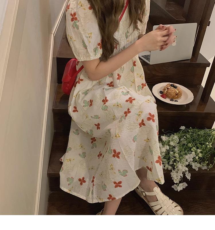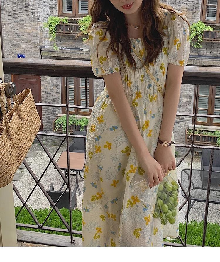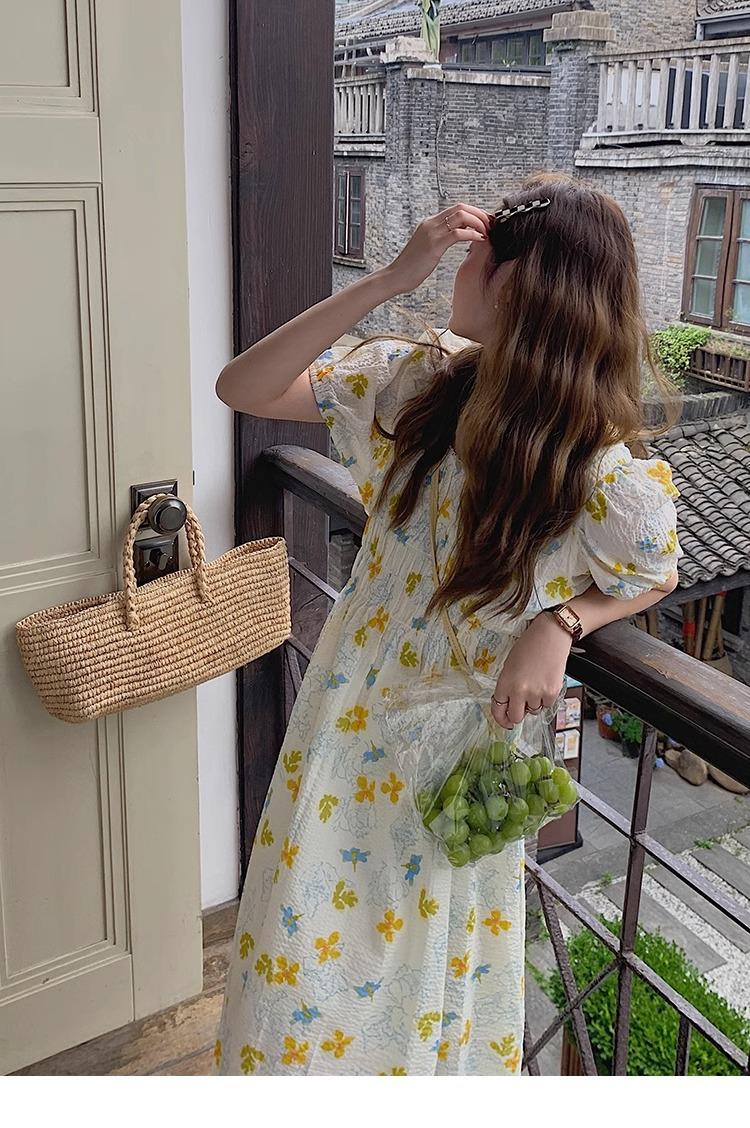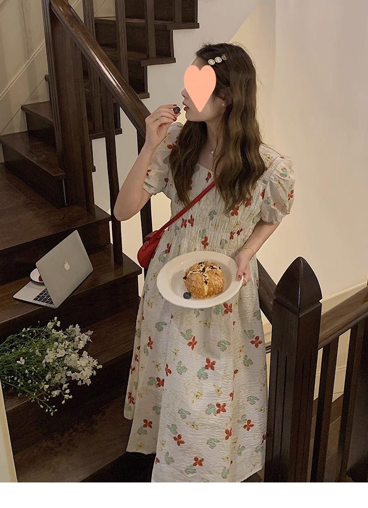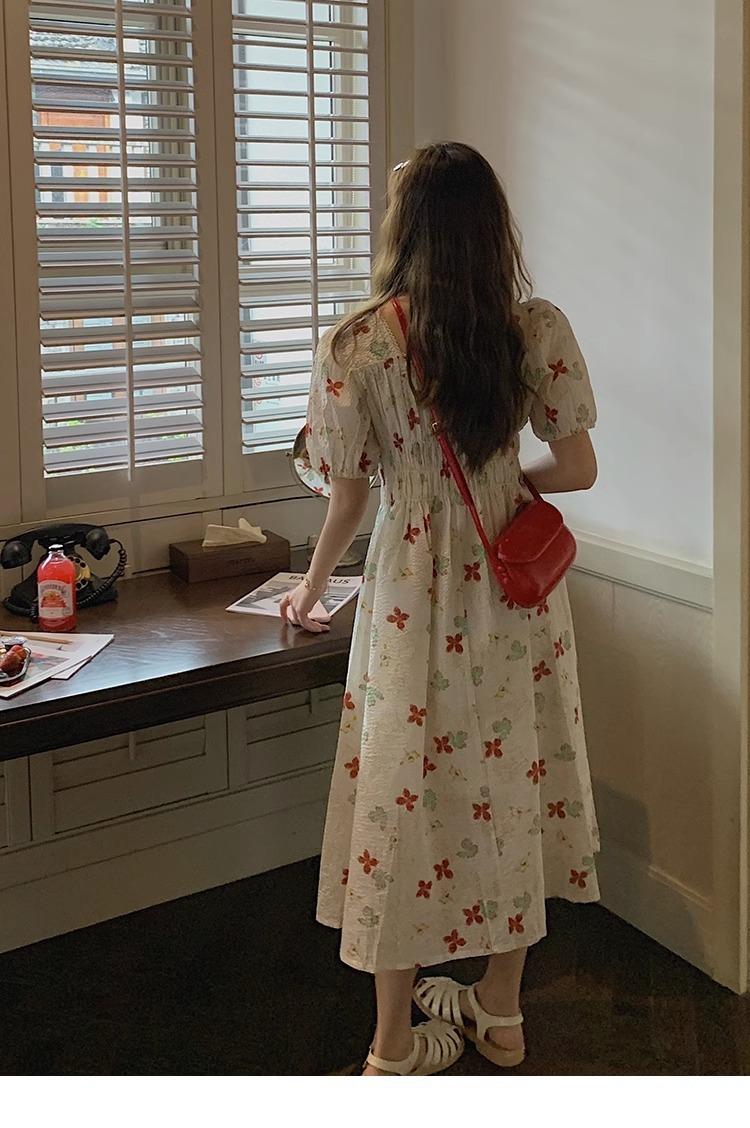2025 Nuevo Estilo de Verano Vestido de Cuello Cuadrado Manga Abullonada Cintura Francesa Falda Floral Pequeña para Niña